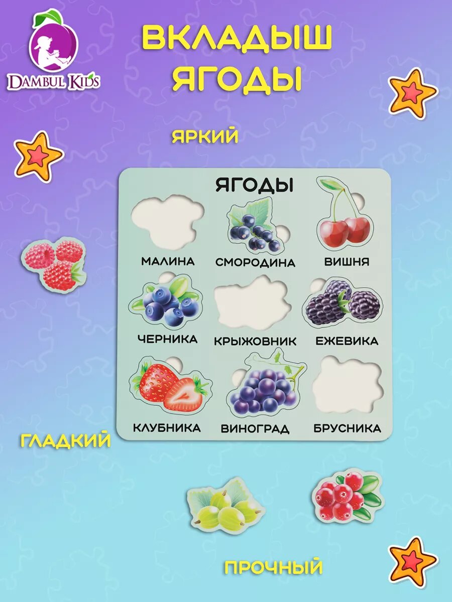 Деревянные пазлы для детей 2 3 4 лет пазл-вкладыш Ягоды интересное: