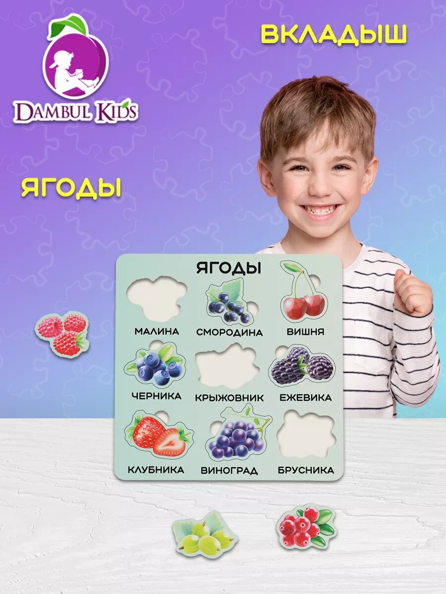 Купить Деревянные пазлы для детей 2 3 4 лет пазл-вкладыш Ягоды