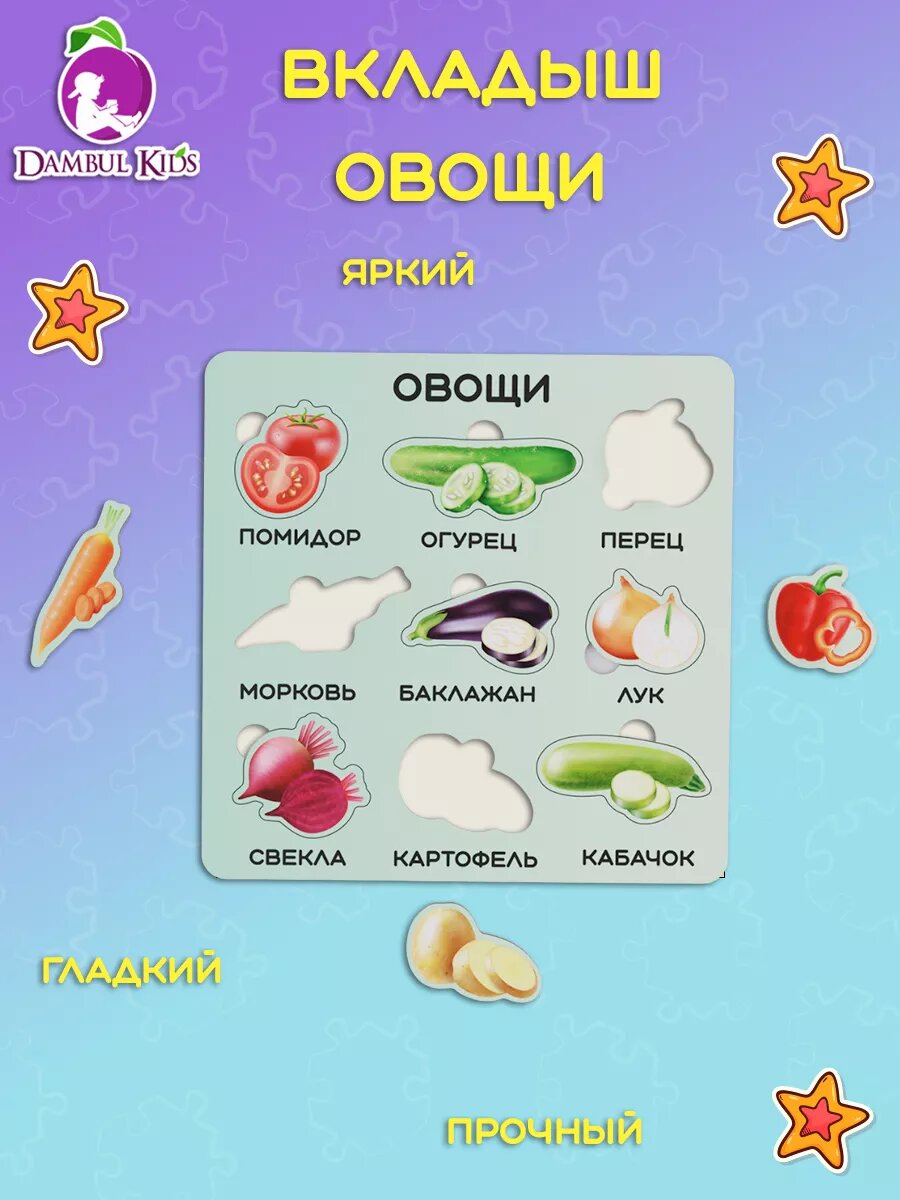 Деревянные пазлы для детей 2 3 4 лет пазл-вкладыш Овощи интересное: