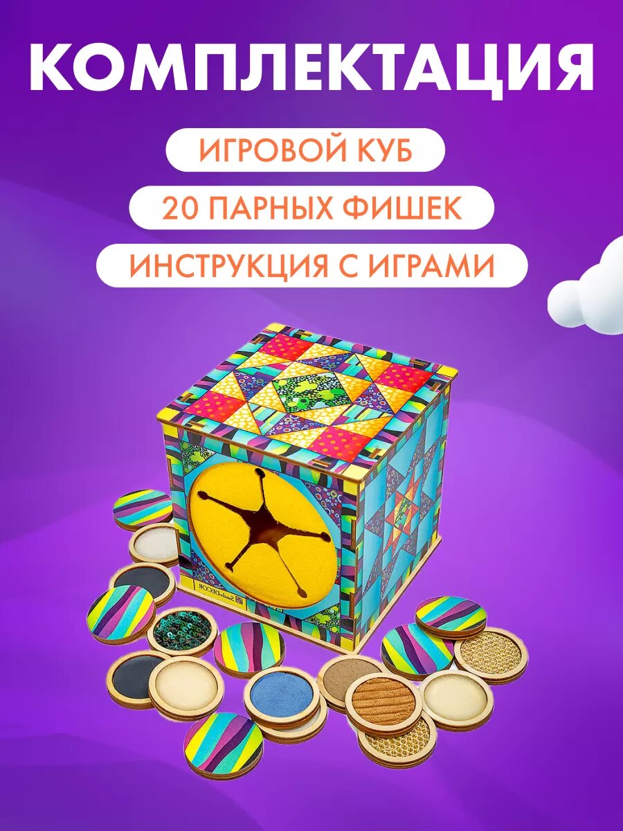 Игра для детей SmileDecor по системе Монтессори Тактильный куб интересное: