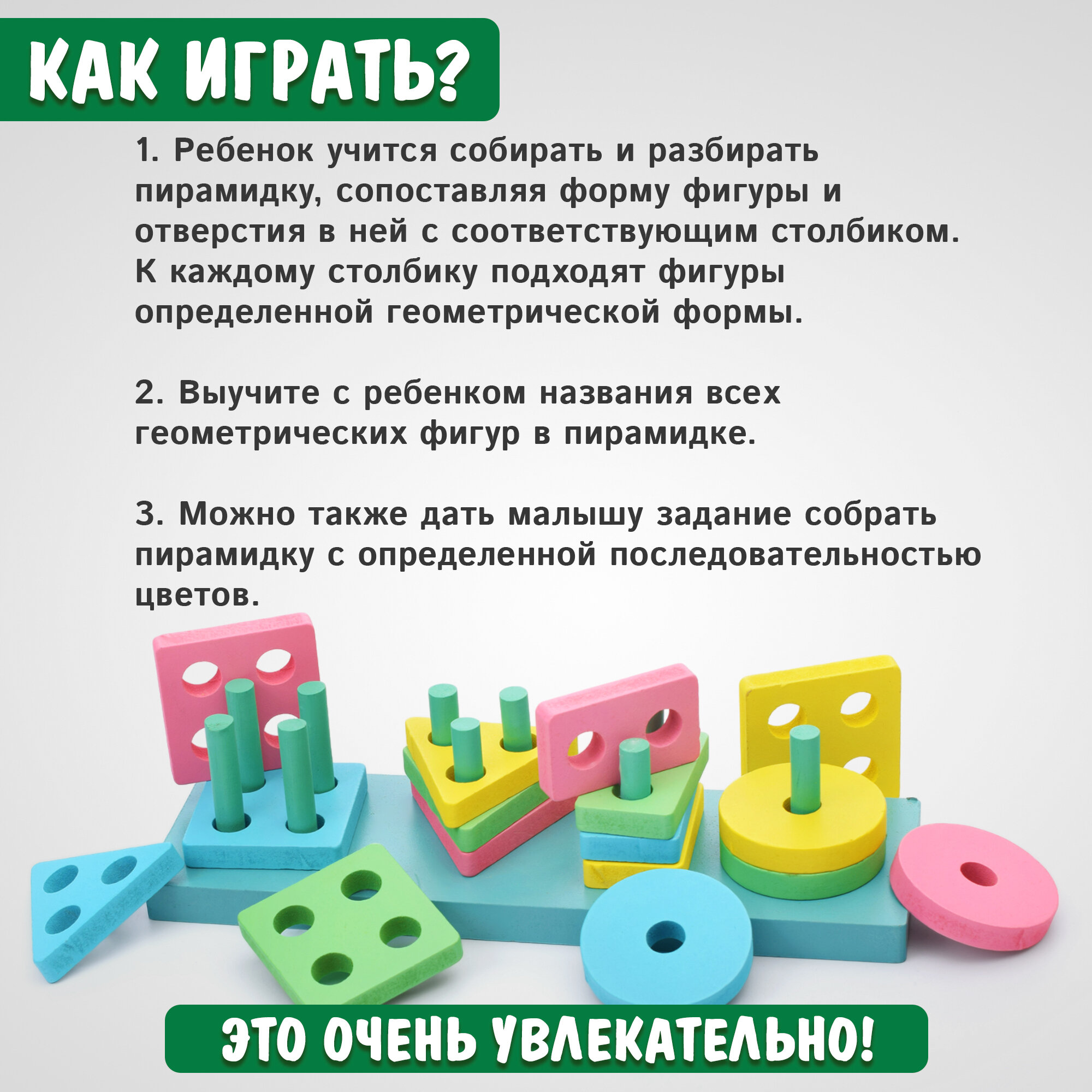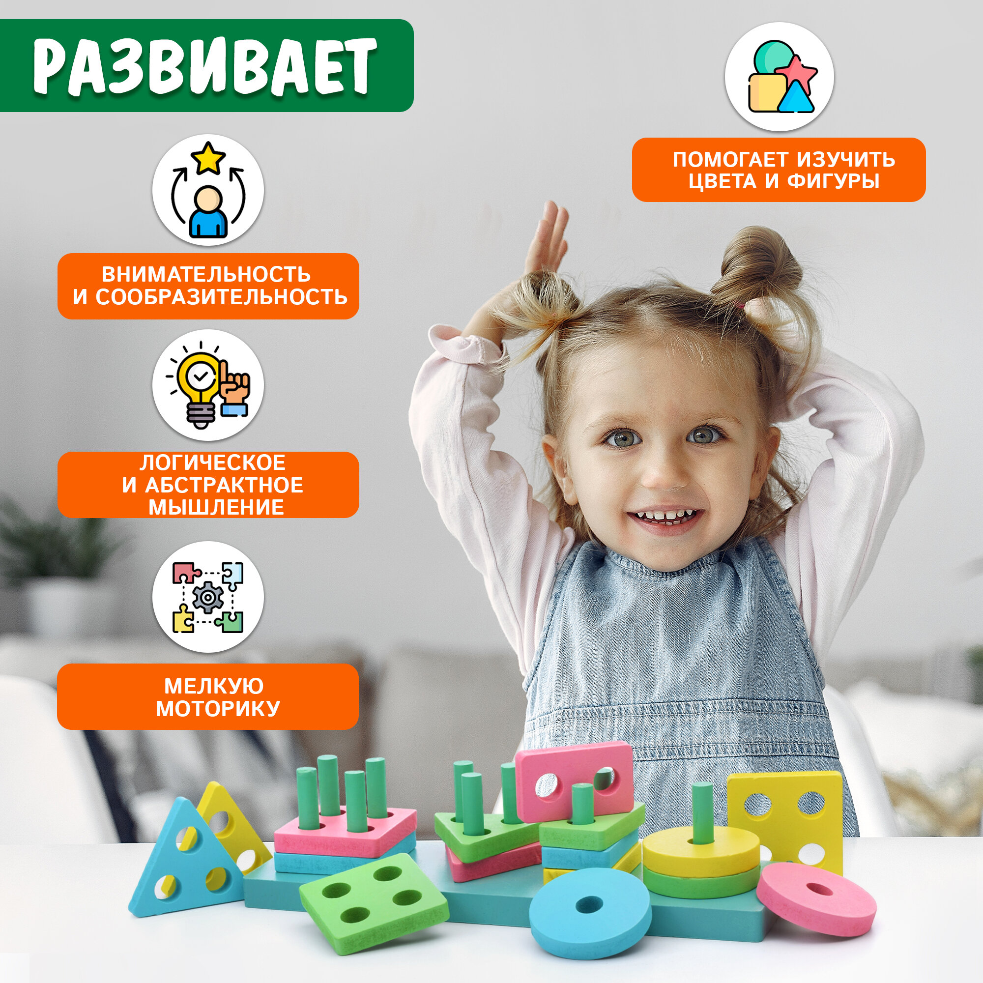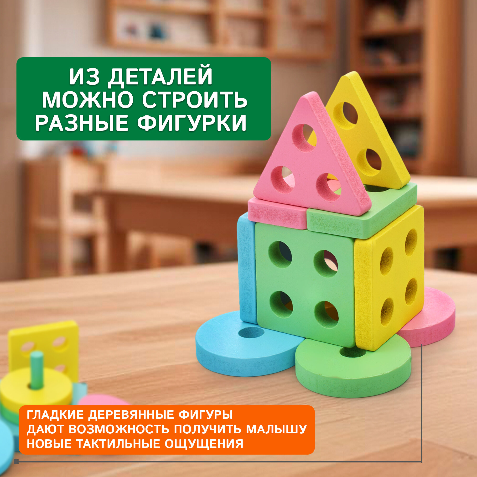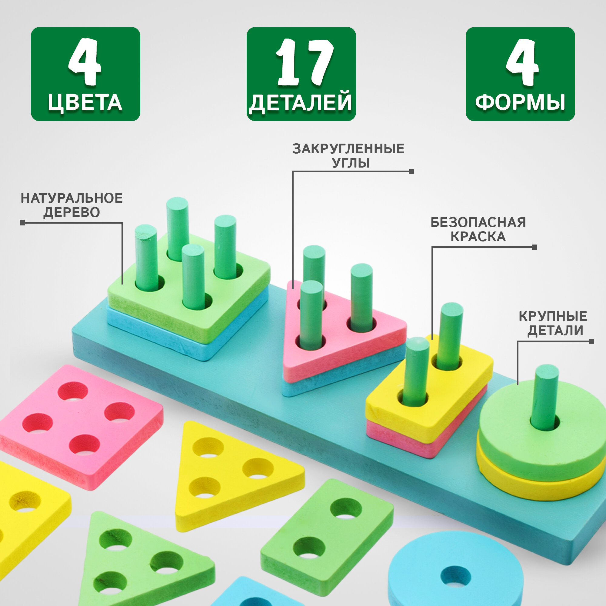 Логическая пирамидка деревянная "Цветные формы" Щепочка. Для детей от 1 года. интересное: