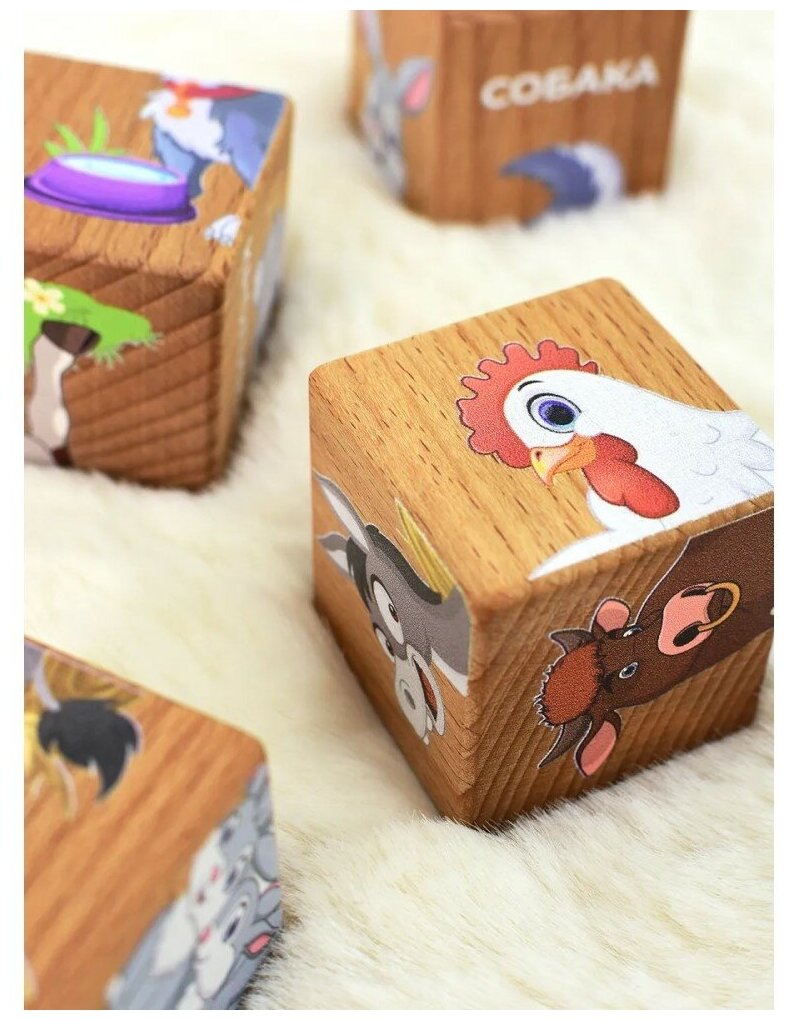 Купить Набор обучающих деревянных кубиков Leader Toys Домашние животные
