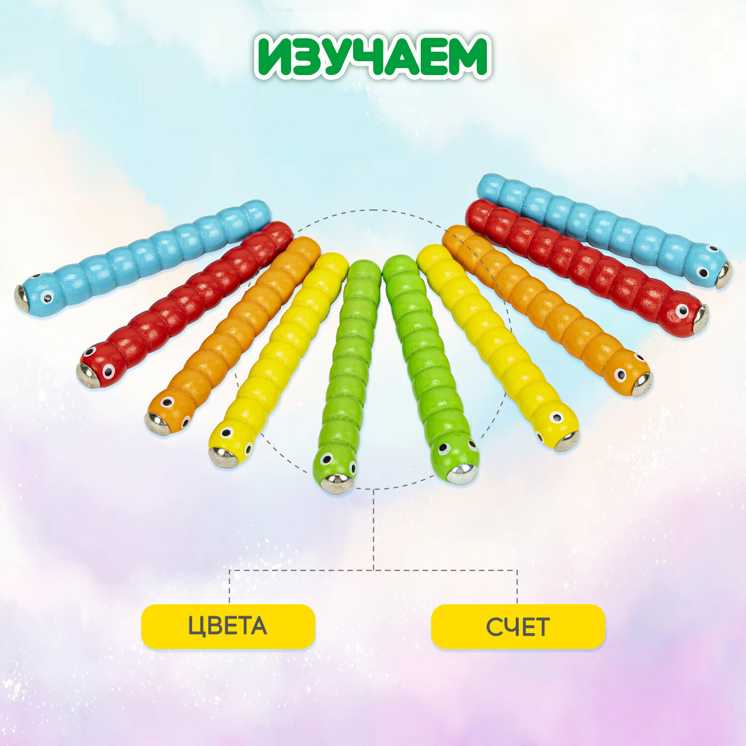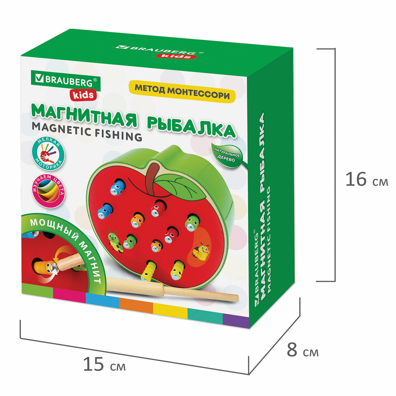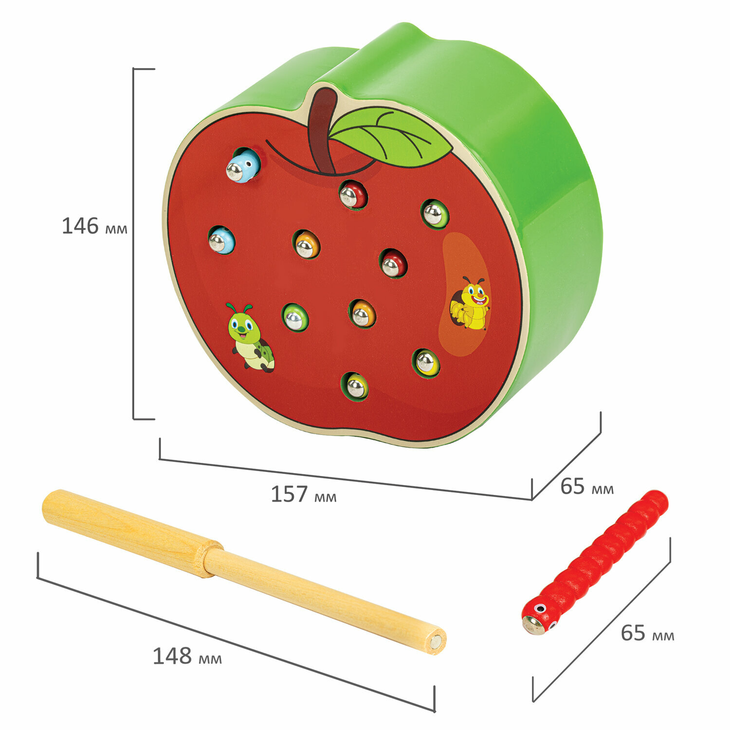Сортер для малышей деревянный Монтессори от 3 лет, магнитная рыбалка Червячки в яблоке, развивающие игрушки для детей, Brauberg Kids, 665244 интересное: