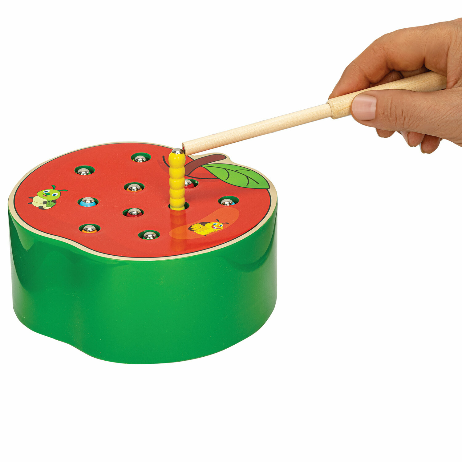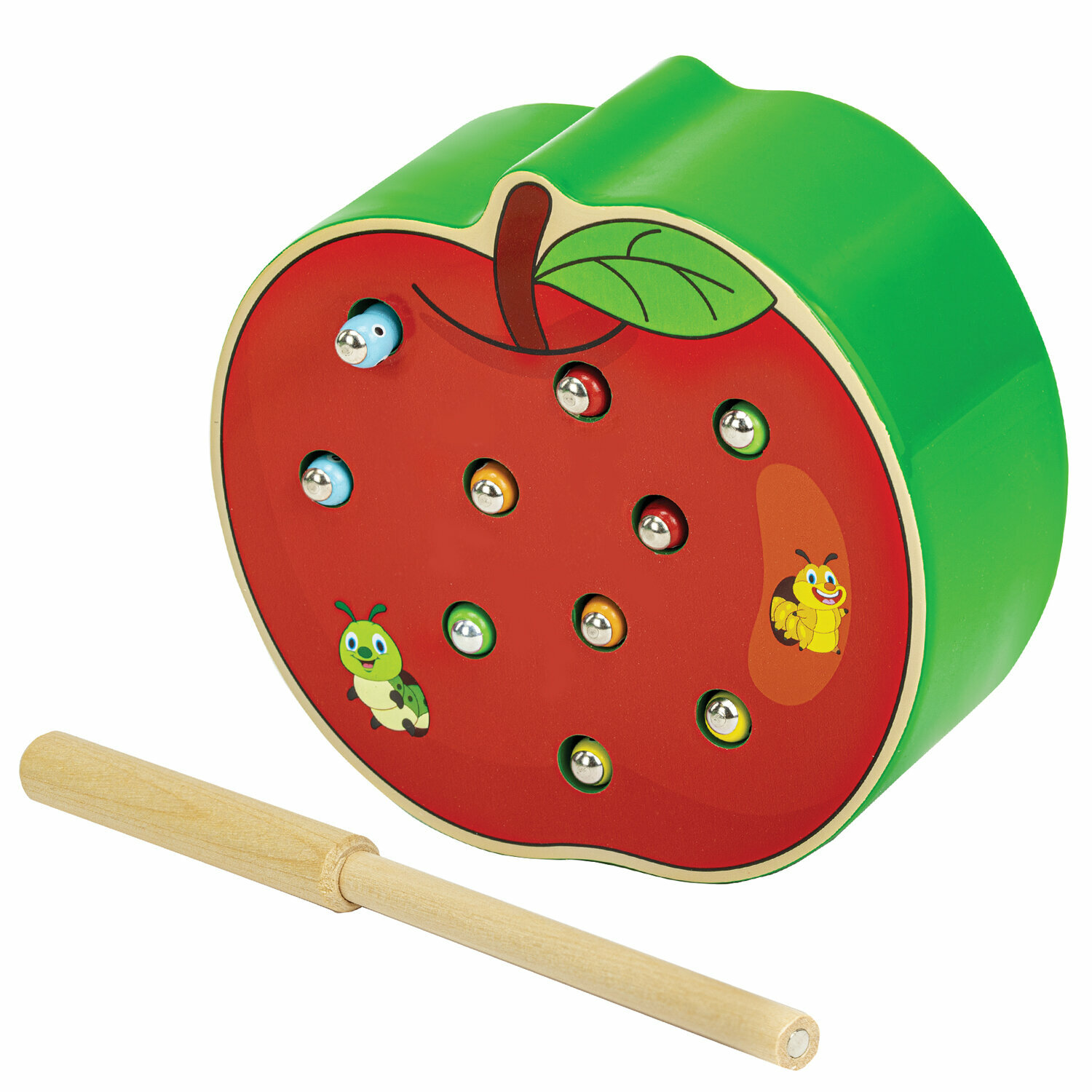 Купить Сортер для малышей деревянный Монтессори от 3 лет, магнитная рыбалка Червячки в яблоке, развивающие игрушки для детей, Brauberg Kids, 665244