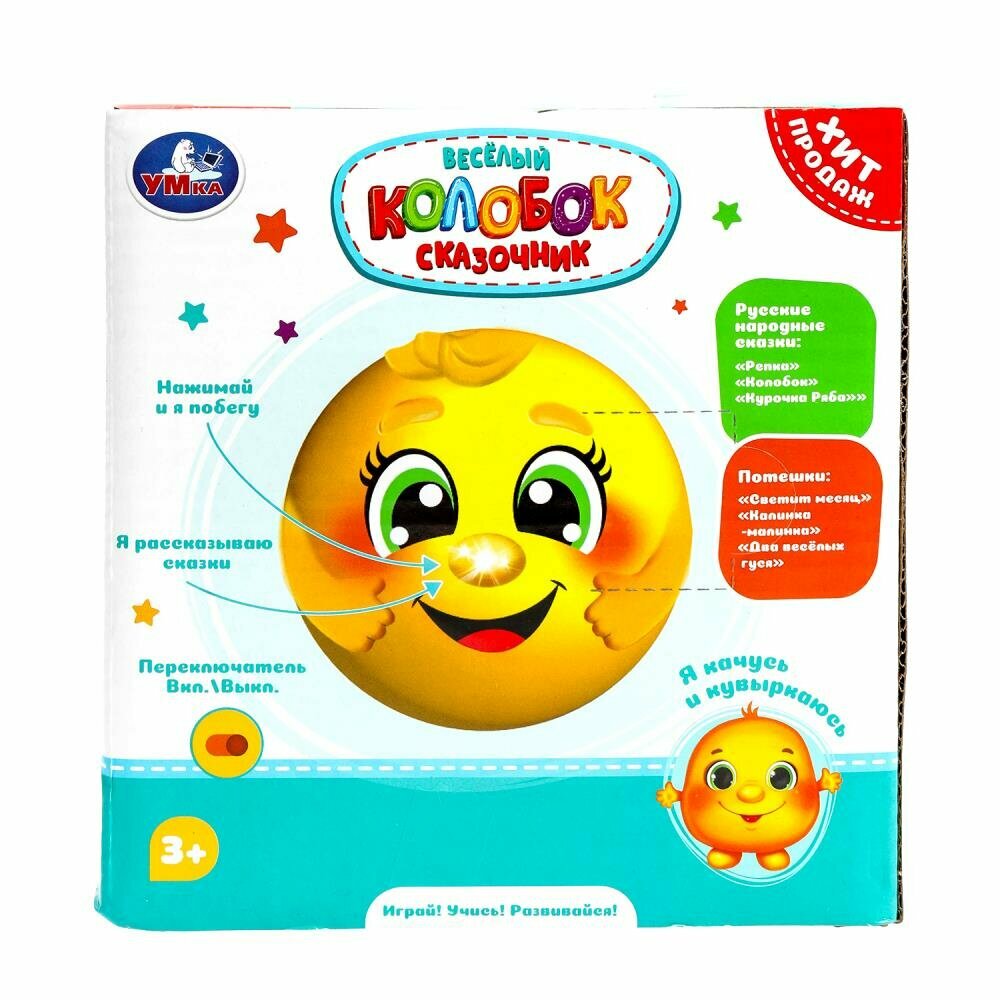Купить Музыкальный Веселый колобок сказочник Умка 25 песен, сказок и звуков, крутится и кувыркается