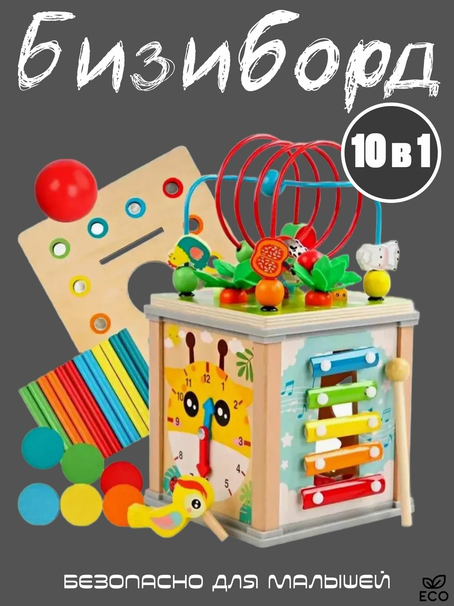 Купить Развивающий деревянный Бизиборд 10в1 для детей / Игрушки Монтессори / Сортер для детей