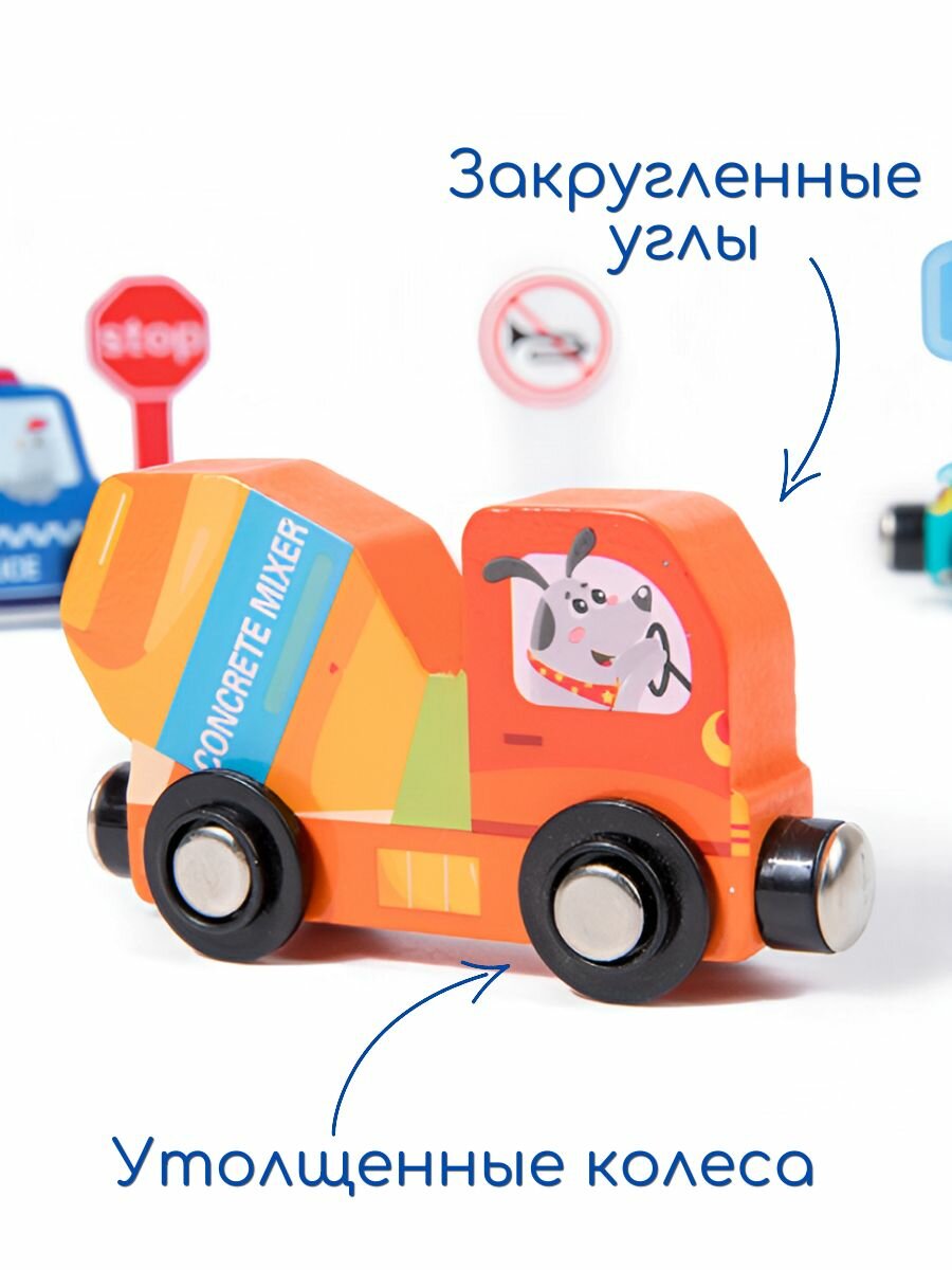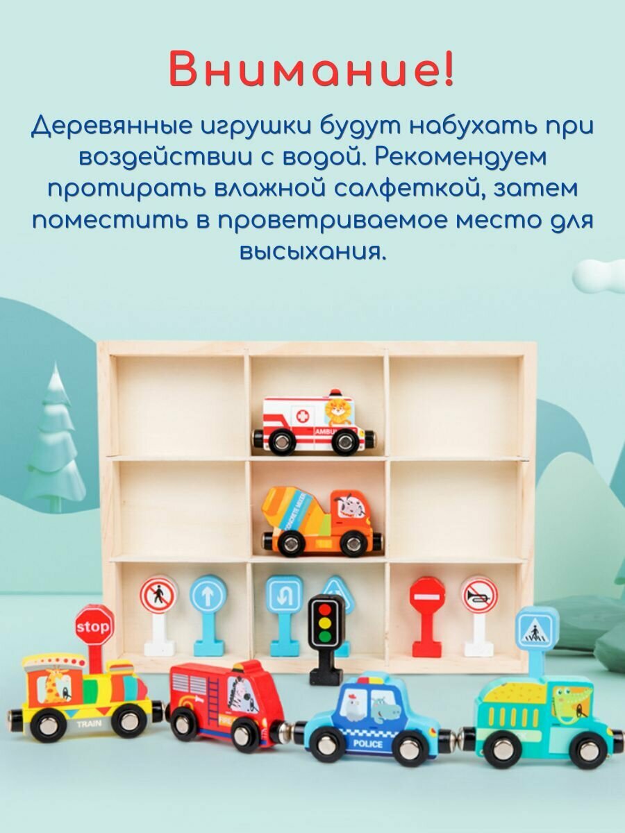 Купить Деревянный набор машинок на магнитах, дорожные знаки/ Развивающие игрушки для малышей