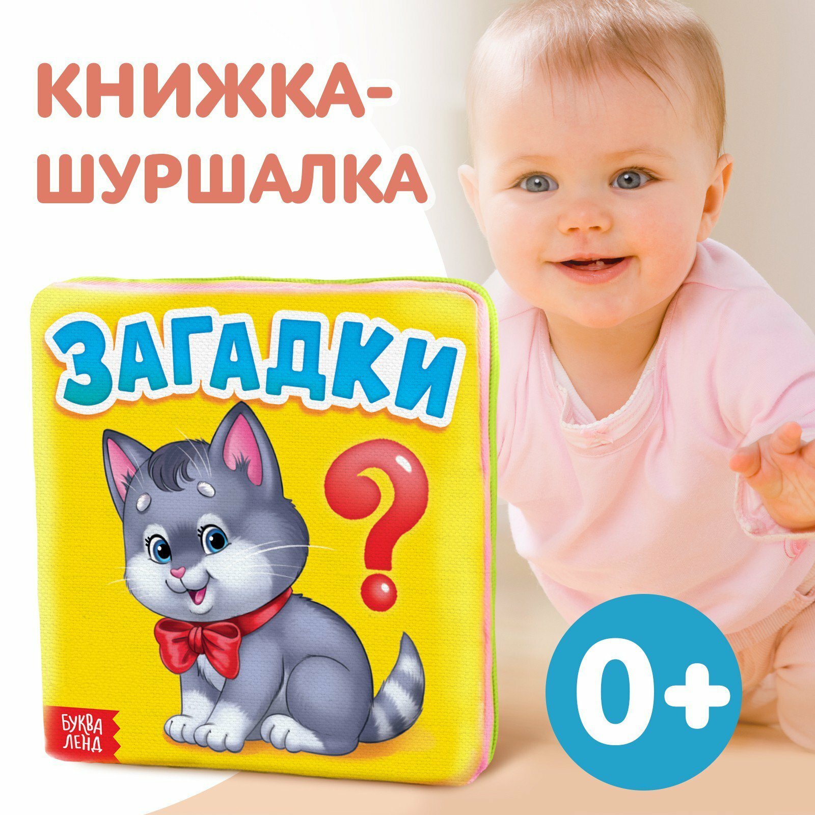Мягкая книжка-малышка "Загадки", мини размер 8х8см, шуршалка от бренда буква ленд, для детей с рождения интересное:
