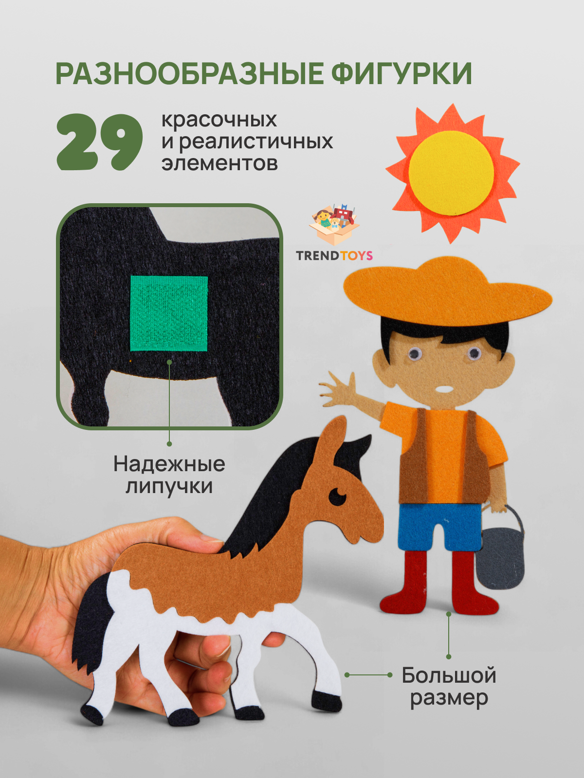 Обучающая игра TrendToys "Ферма", для малышей, из фетра, на липучках интересное: