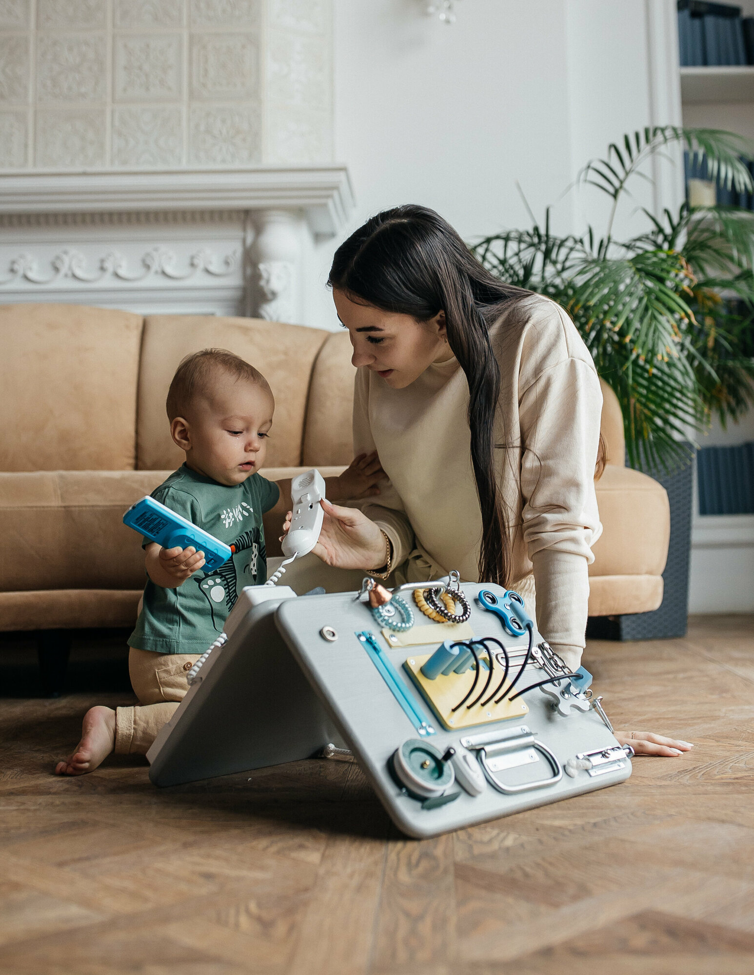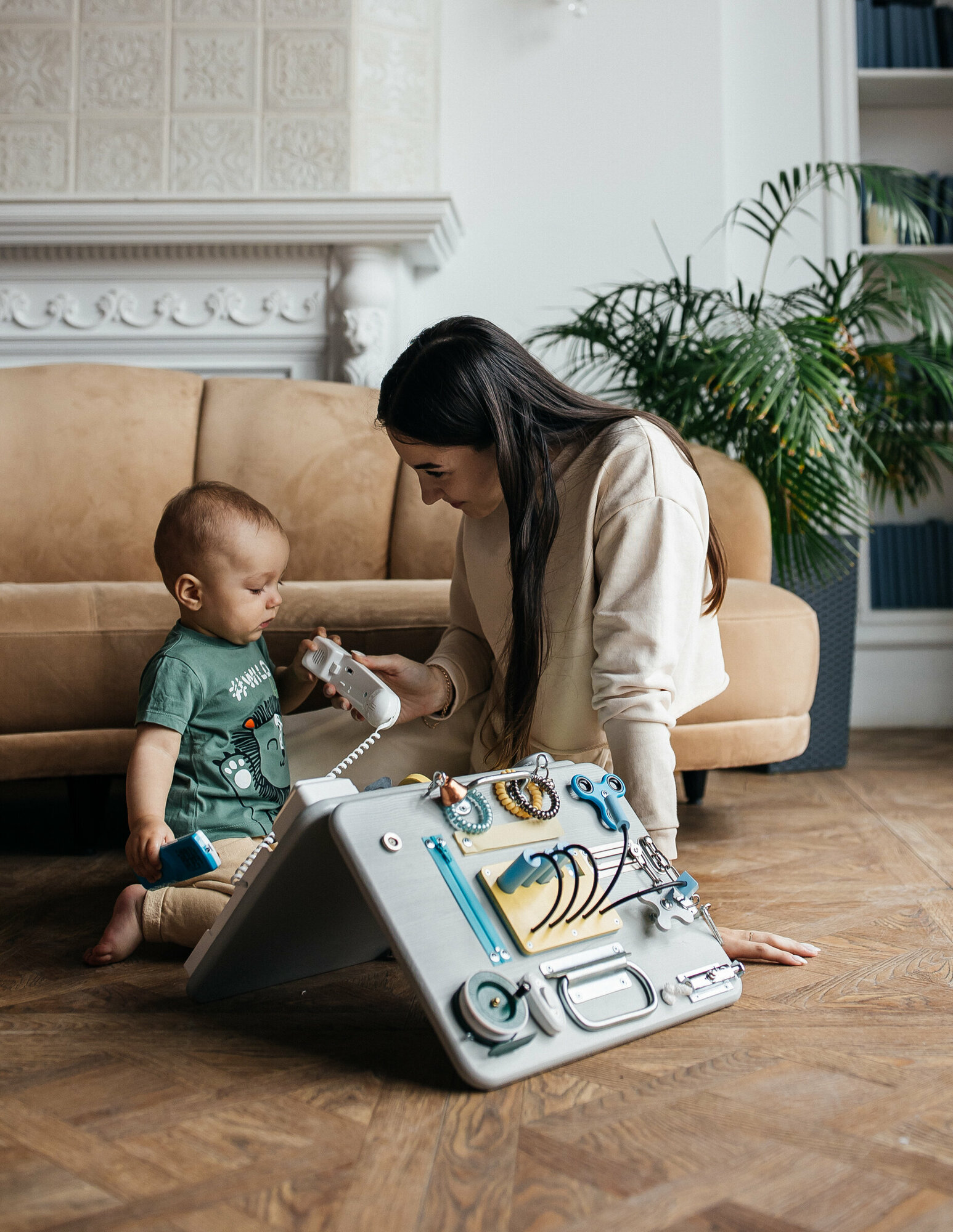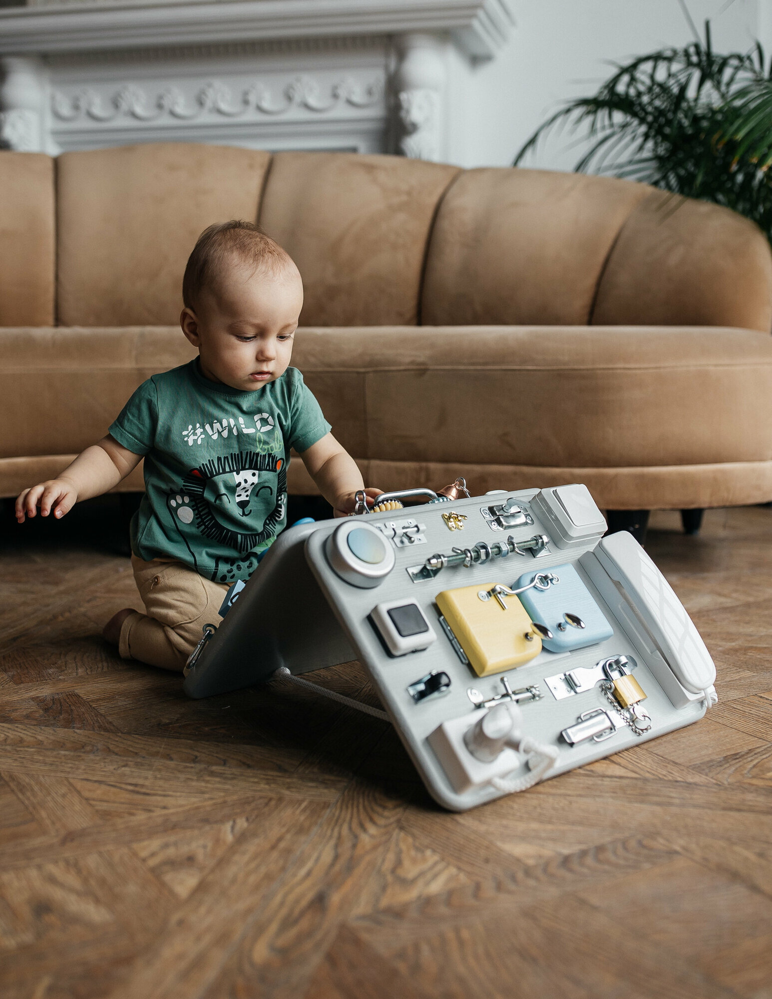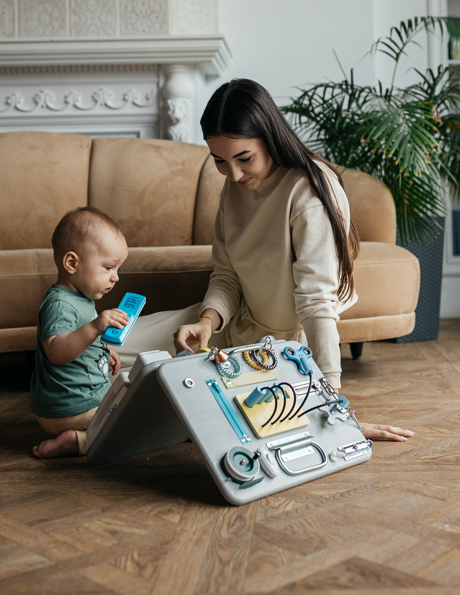Бизиборд развивающий со светом, 40/30 см. двойной, цвет кремовый