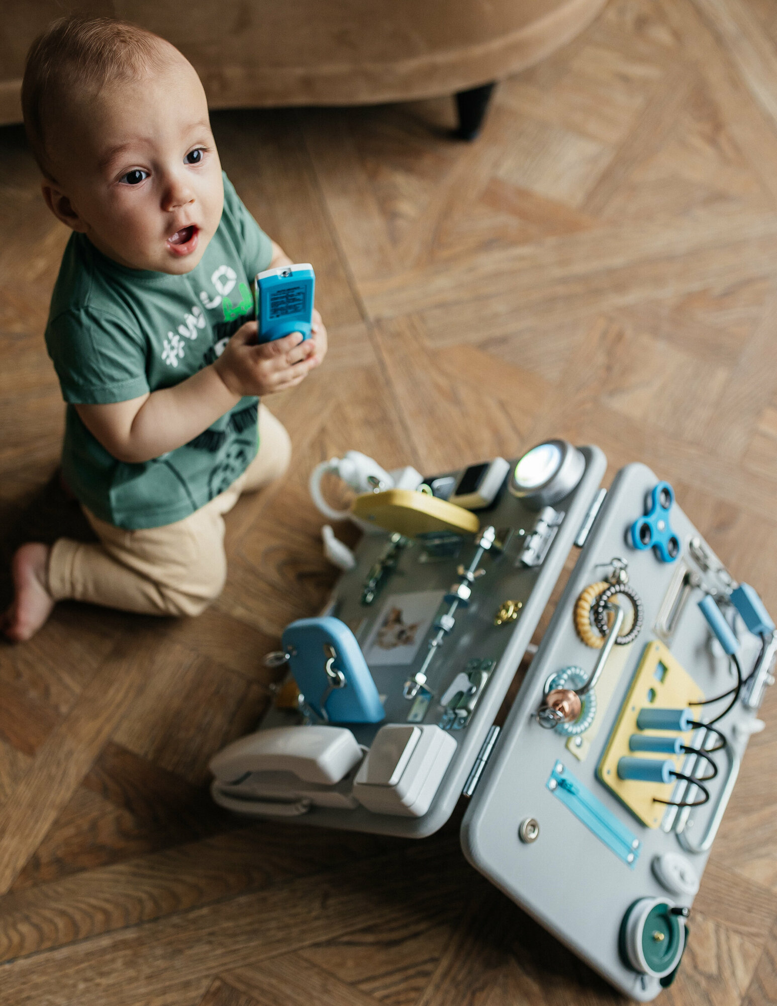Бизиборд развивающий со светом, 40/30 см. двойной, цвет изумрудный