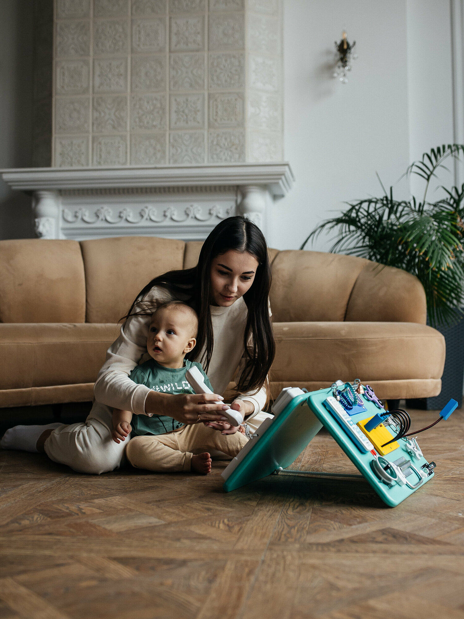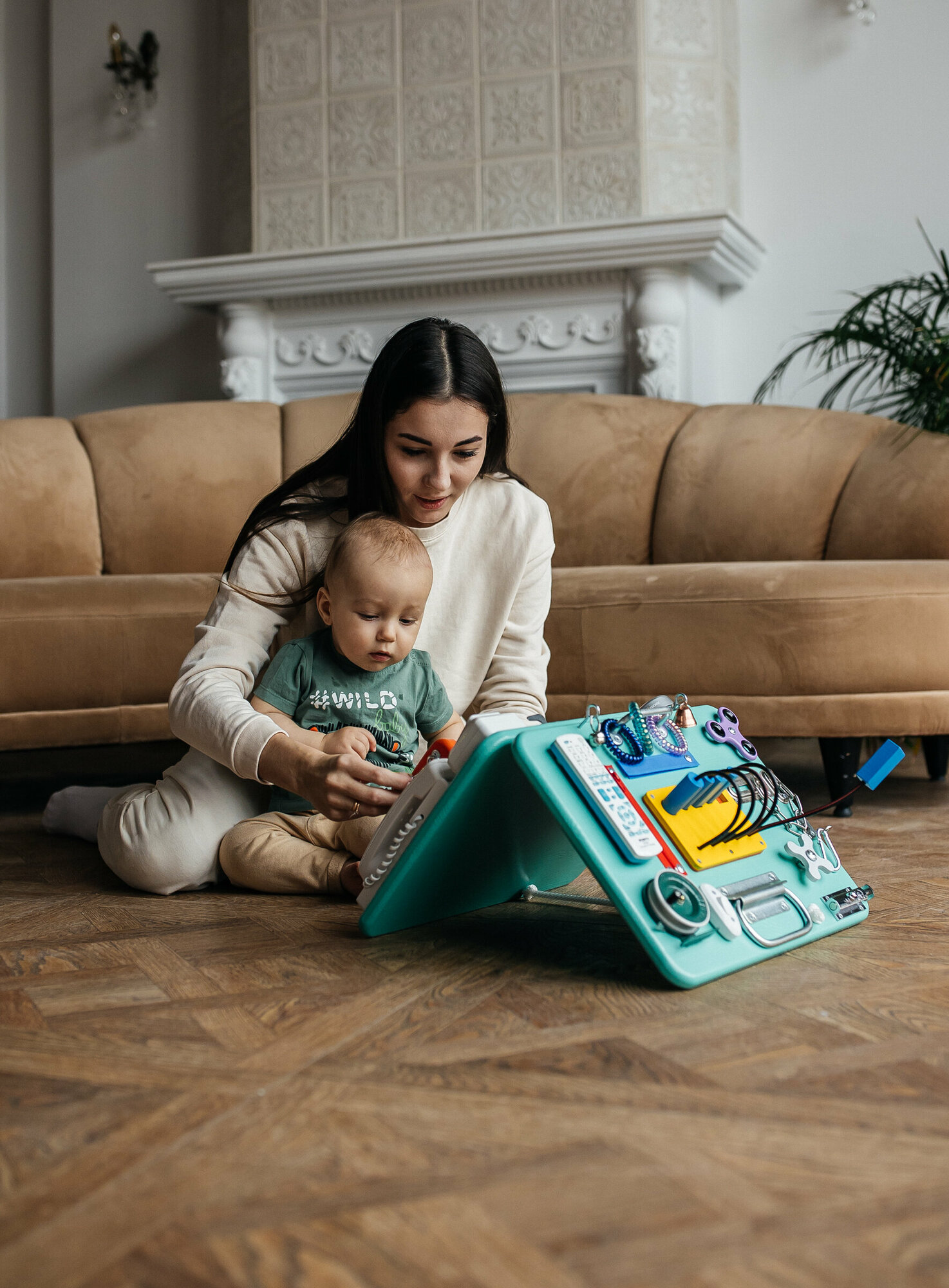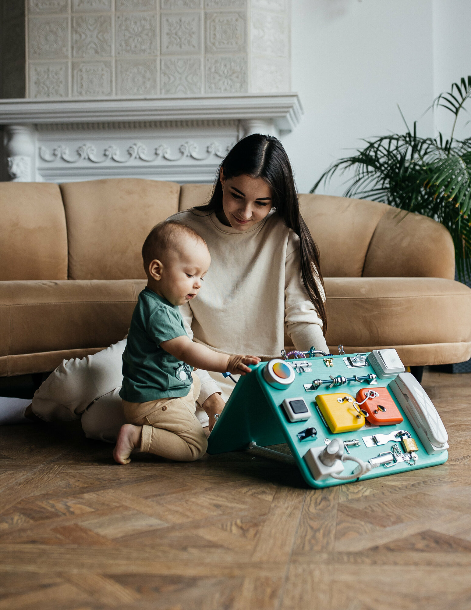 Бизиборд развивающий со светом, 40/30 см. двойной, цвет кремовый