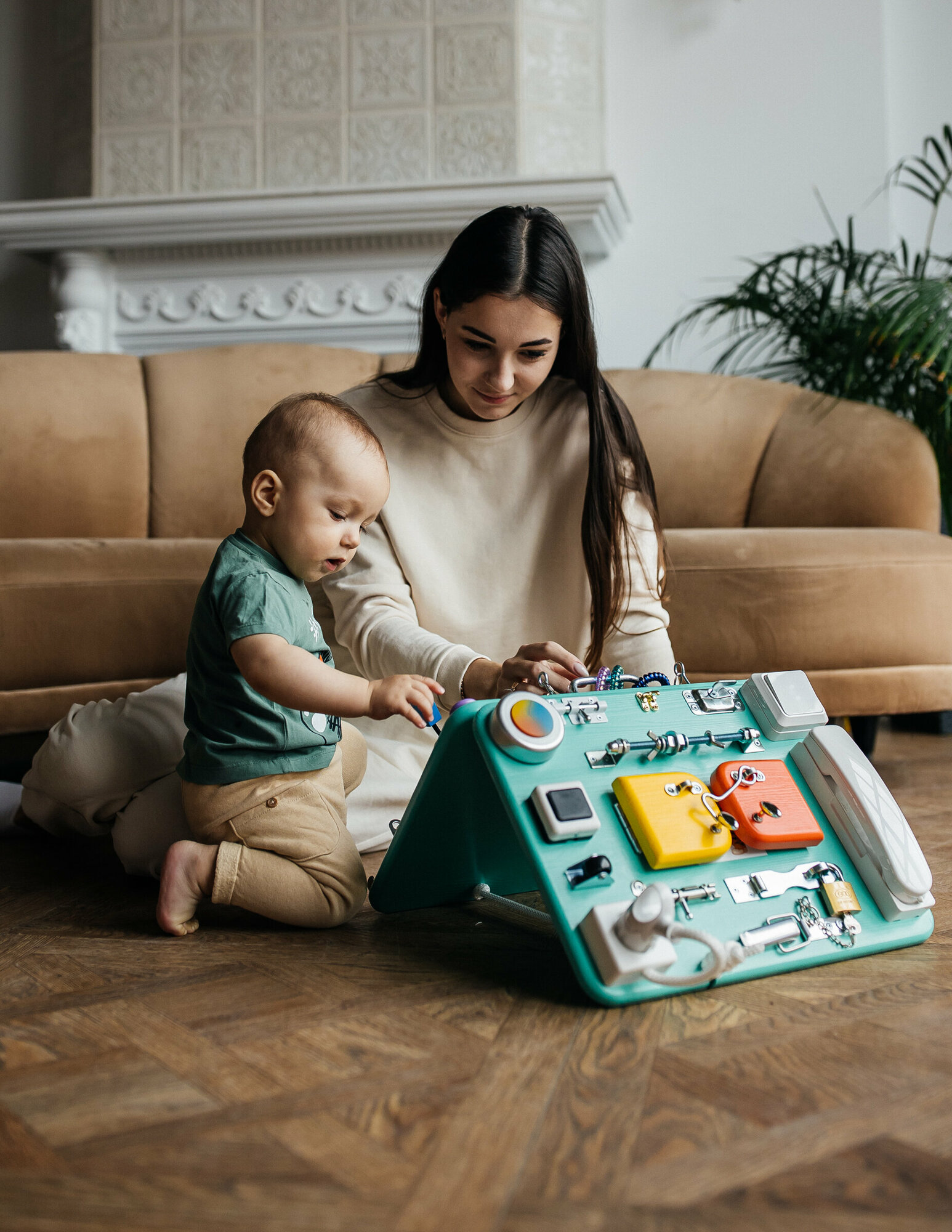 Купить Бизиборд развивающий со светом, 40/30 см. двойной, цвет изумрудный