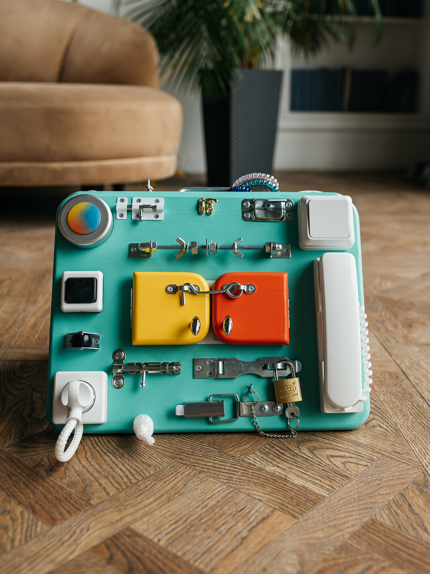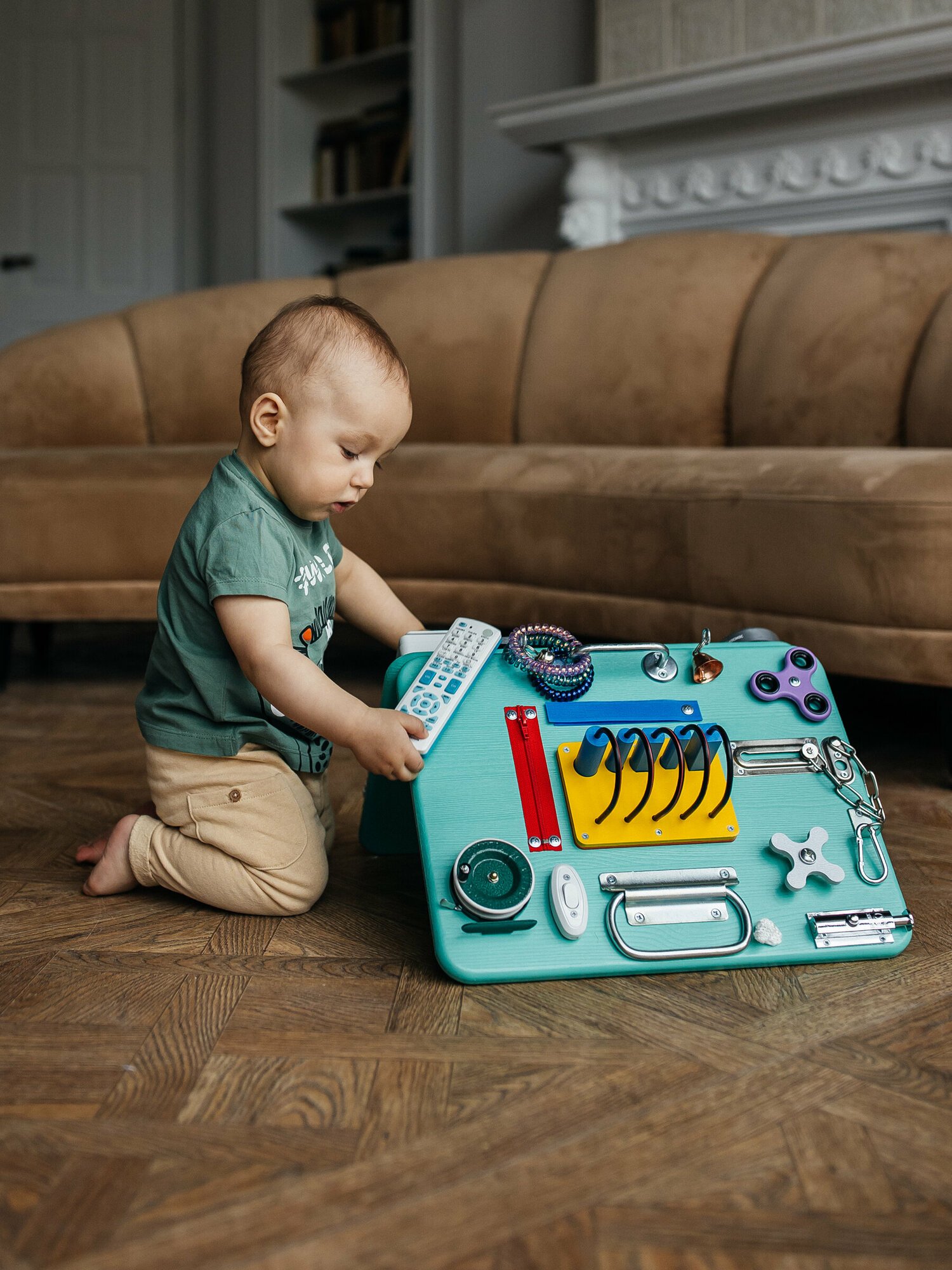 Бизиборд развивающий со светом, 40/30 см. двойной, цвет мятный