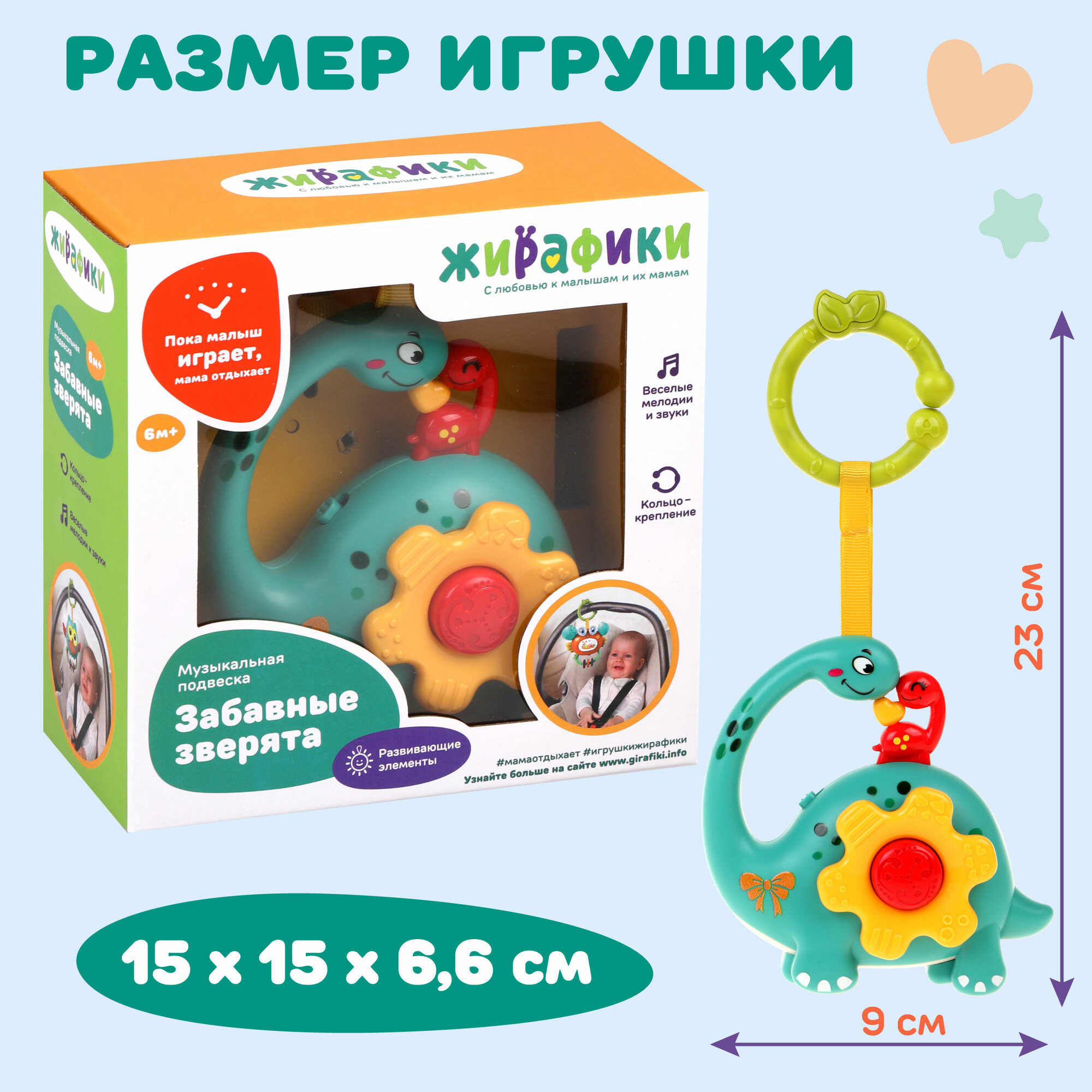 Музыкальная подвеска Жирафики "Динозаврик", звуковые эффекты интересное: