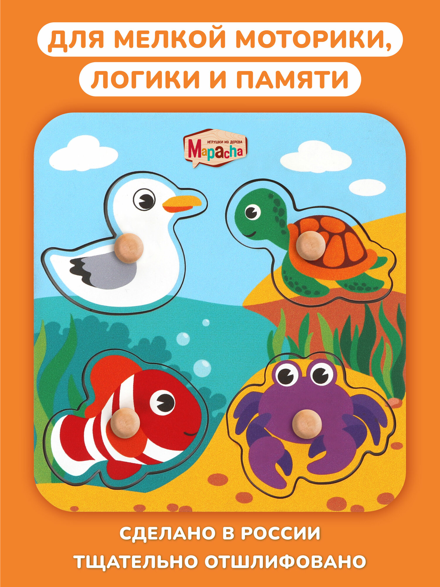 Купить Рамка вкладыш Морские Животные деревянная развивающая игра сортер для детей