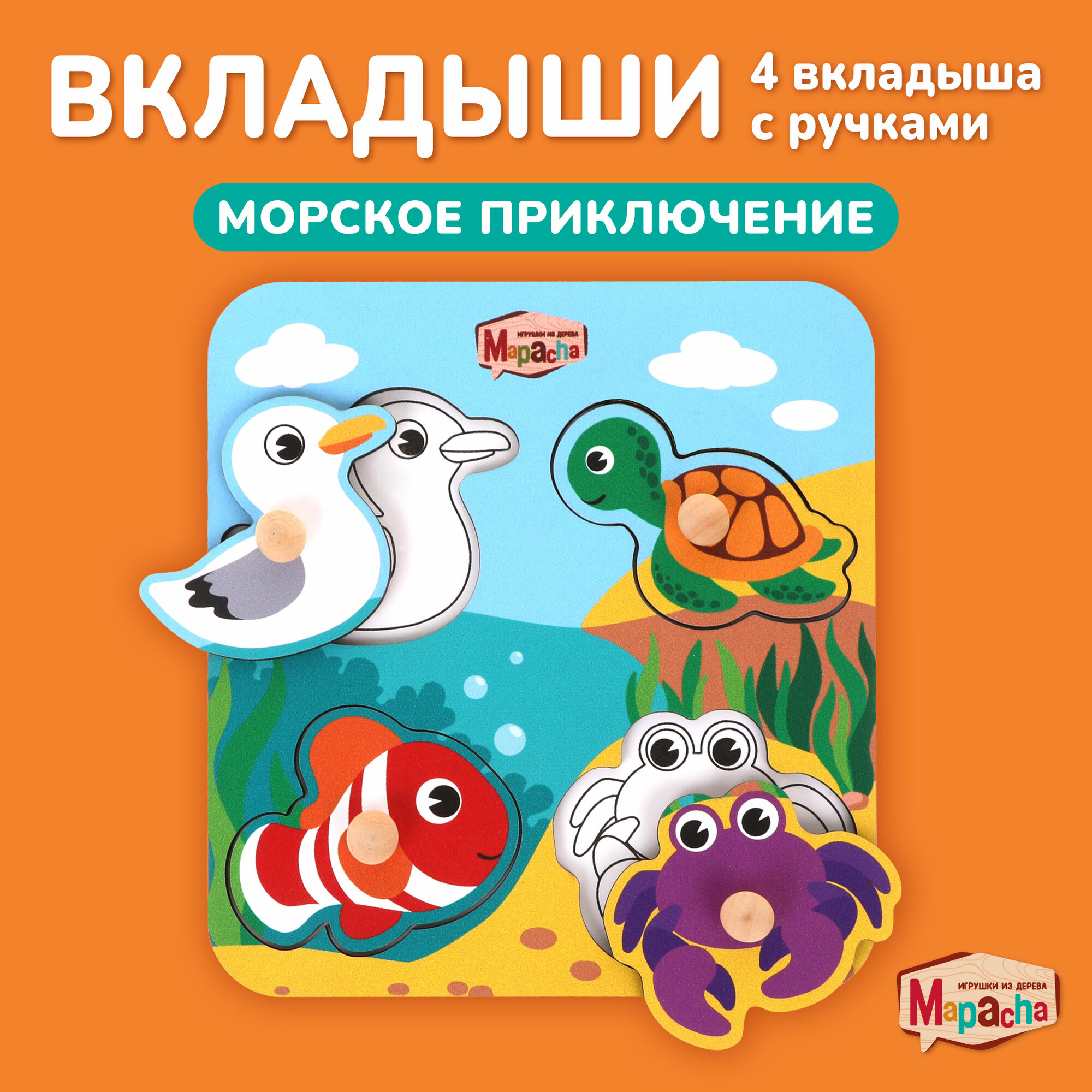 Развивающая игрушка вкладыши Mapacha "Животные океана" для малышей, деревянная