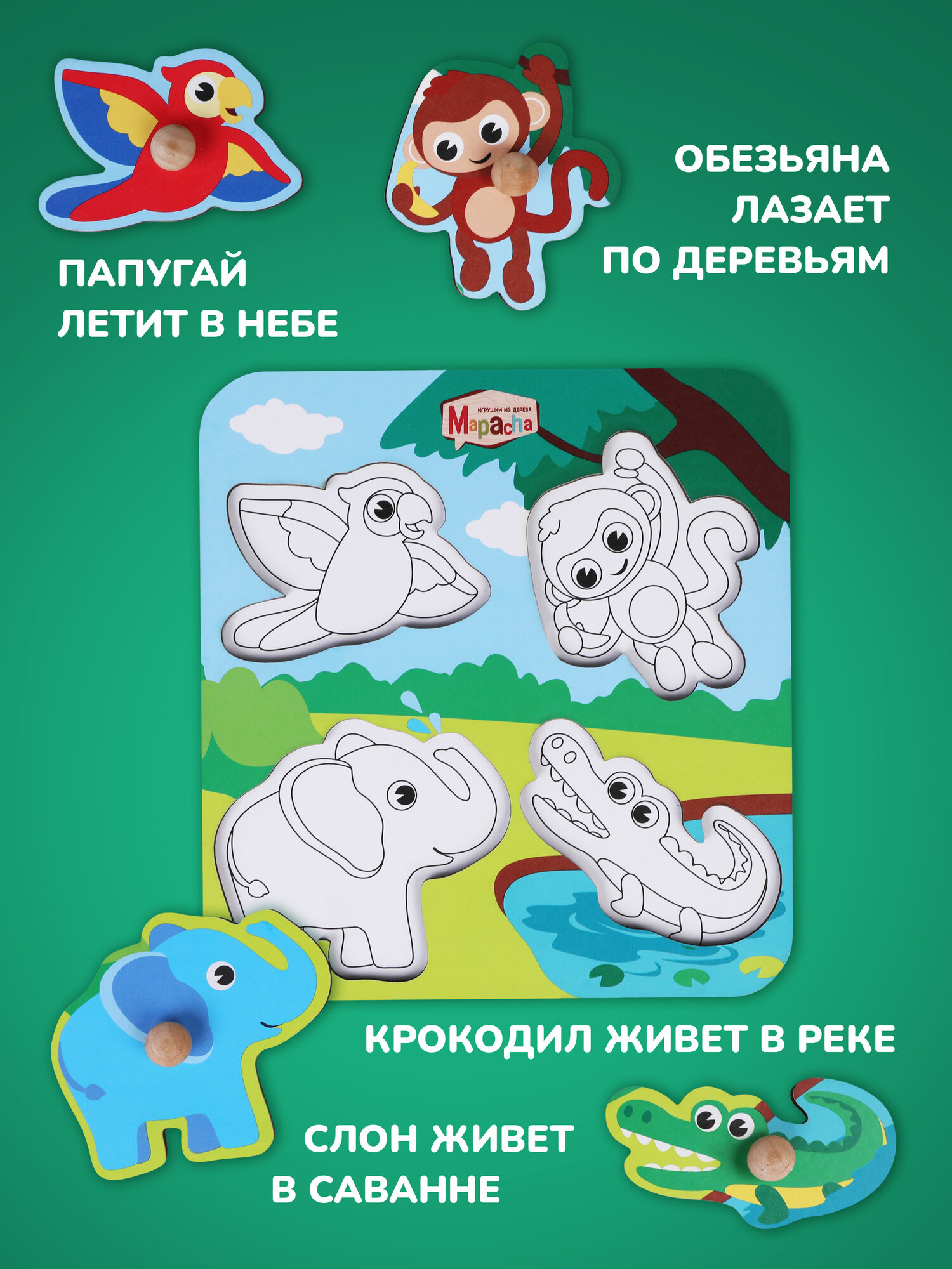 Купить Развивающая игрушка вкладыши Mapacha "Веселые джунгли", деревянная, для малышей
