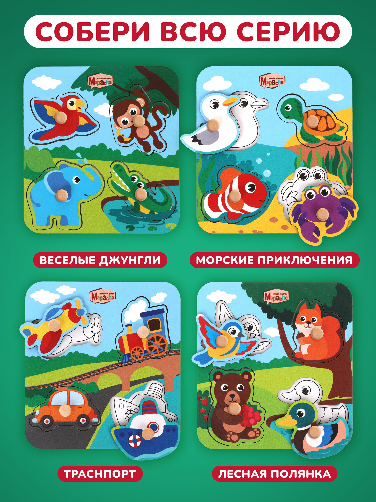 Ниже Вы можете прочитать отзывы на Развивающая игрушка вкладыши Mapacha "Веселые джунгли", деревянная, для малышей, ознакомится с подробными характеристиками, посмотреть интересные обзоры и фотографии на Развивающая игрушка вкладыши Mapacha "Веселые джунгли", деревянная, для малышей.