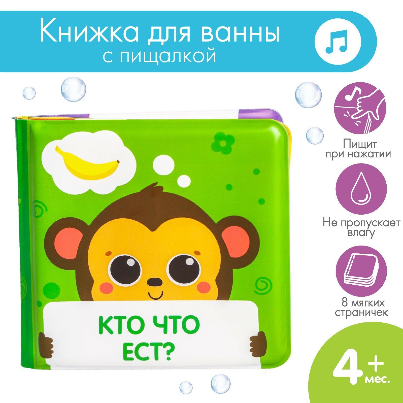 Купить Книжка-игрушка «Кто что ест?» мордочки, мягкая, можно мочить