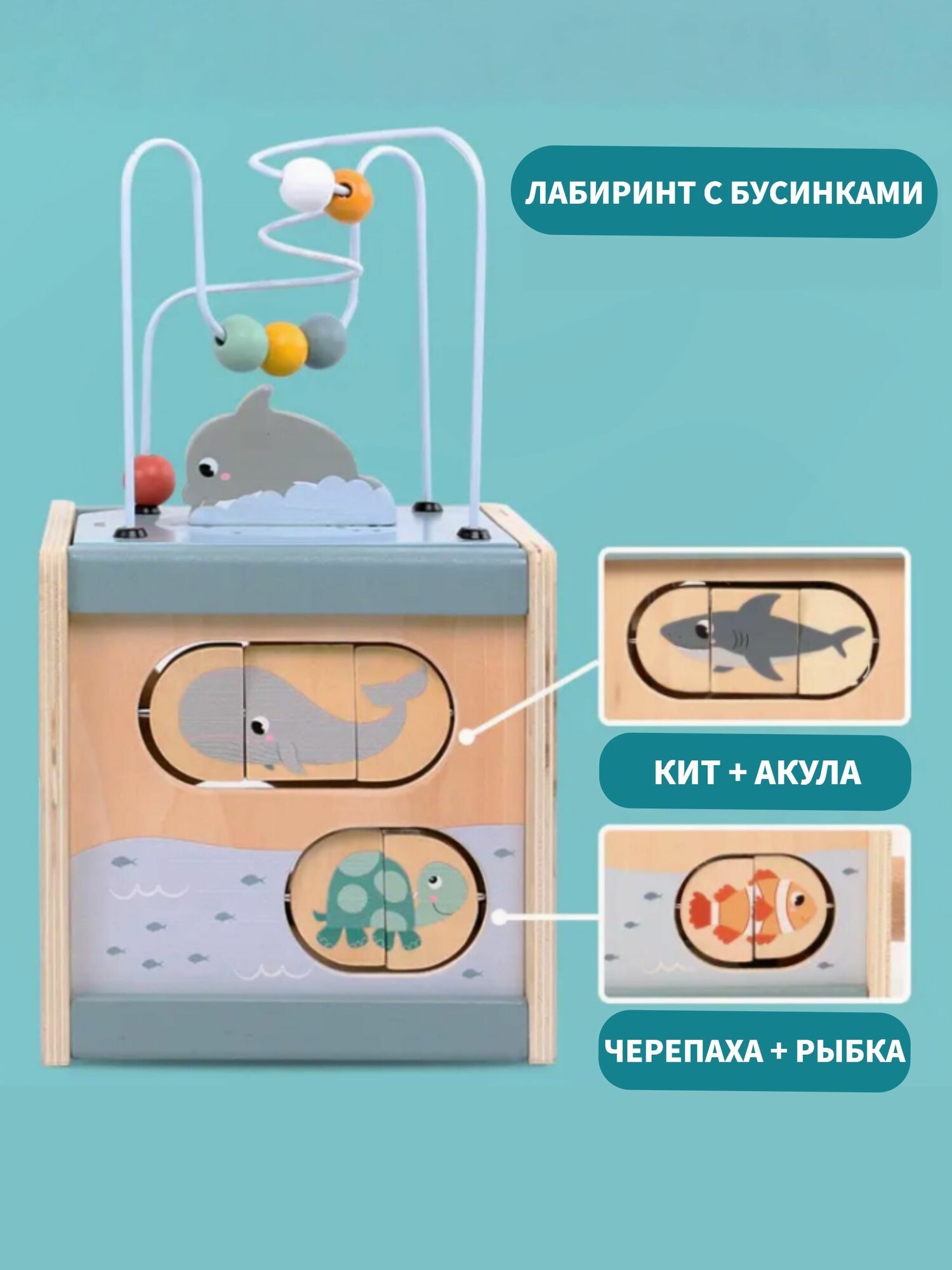 Купить Развивающий деревянный Бизикуб 5 в 1 / Игрушки Монтессори / Сортер для детей