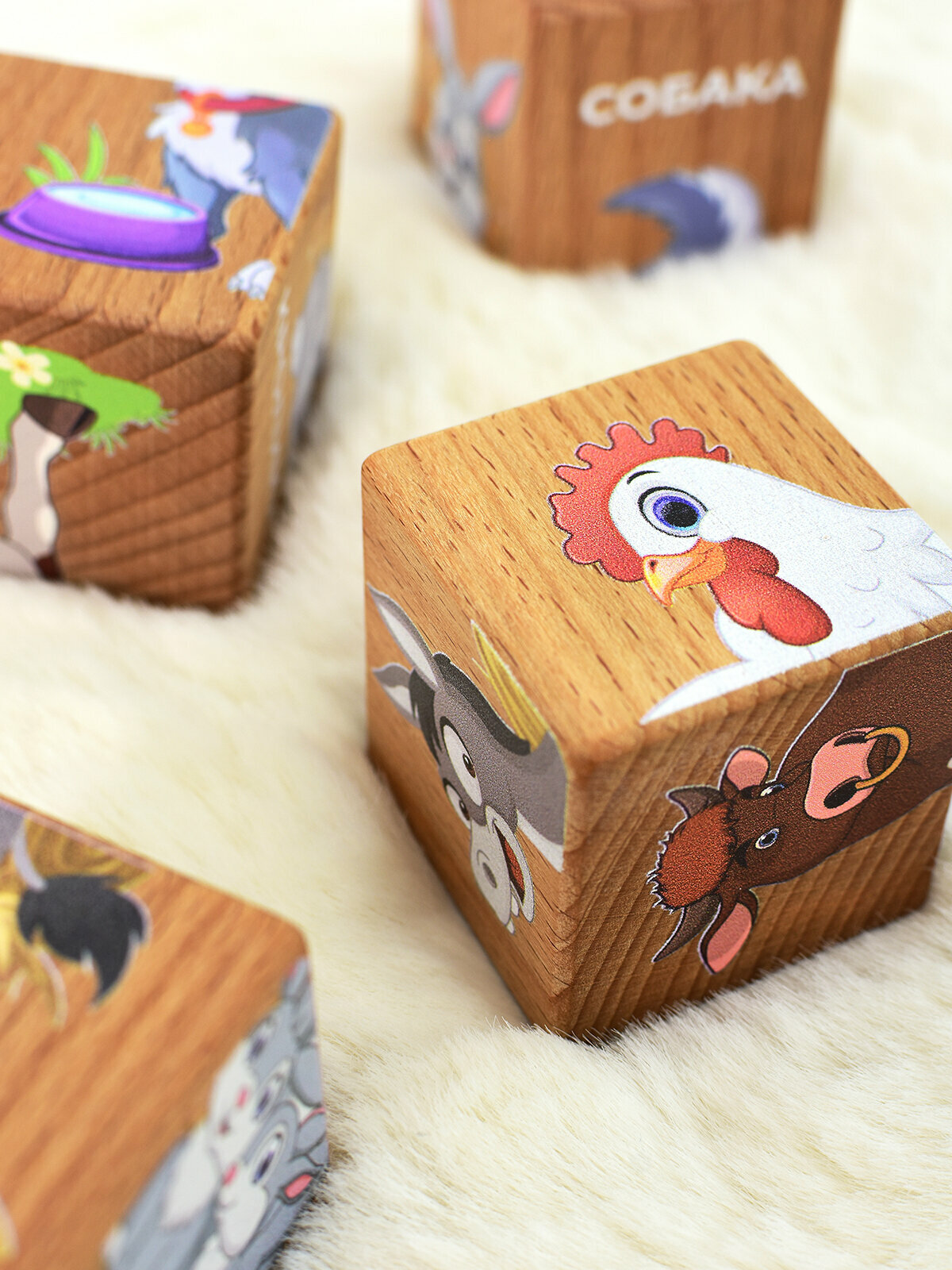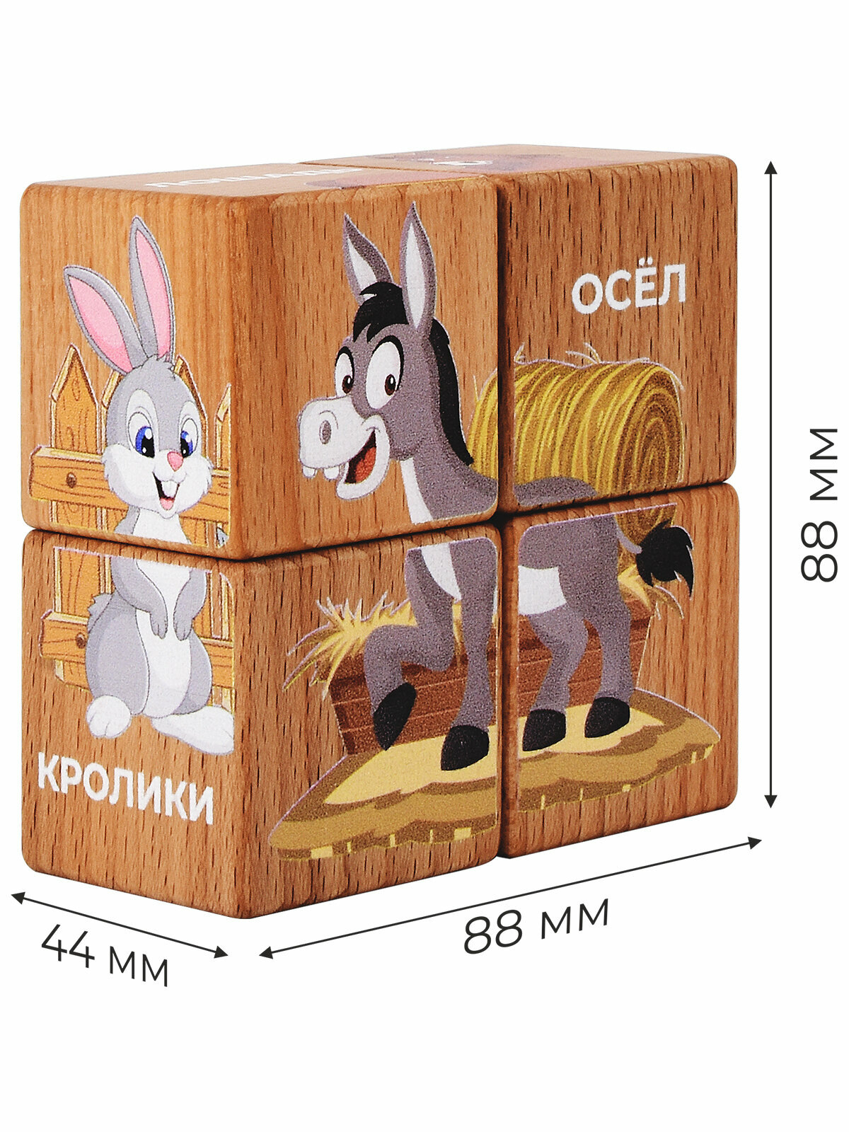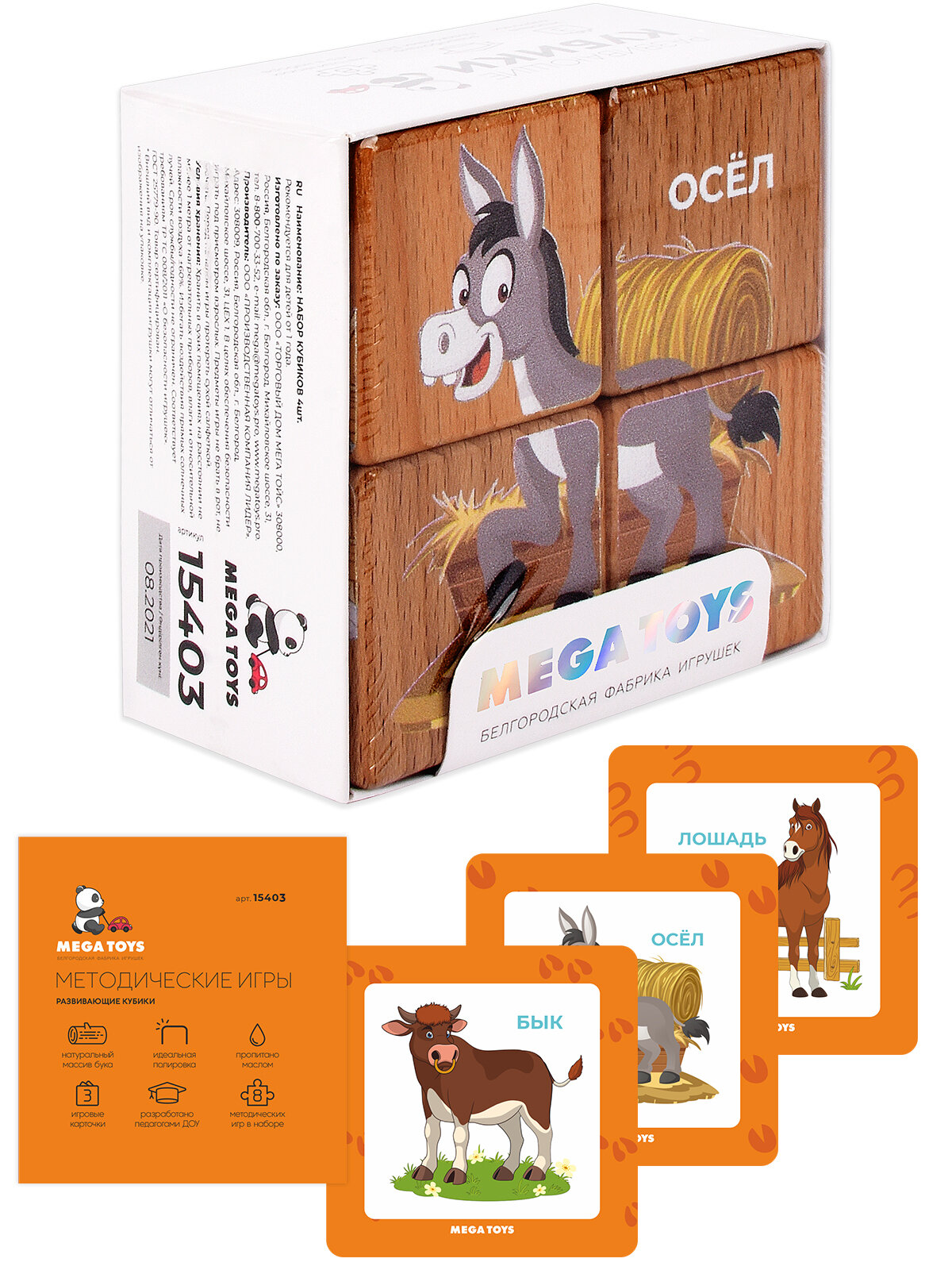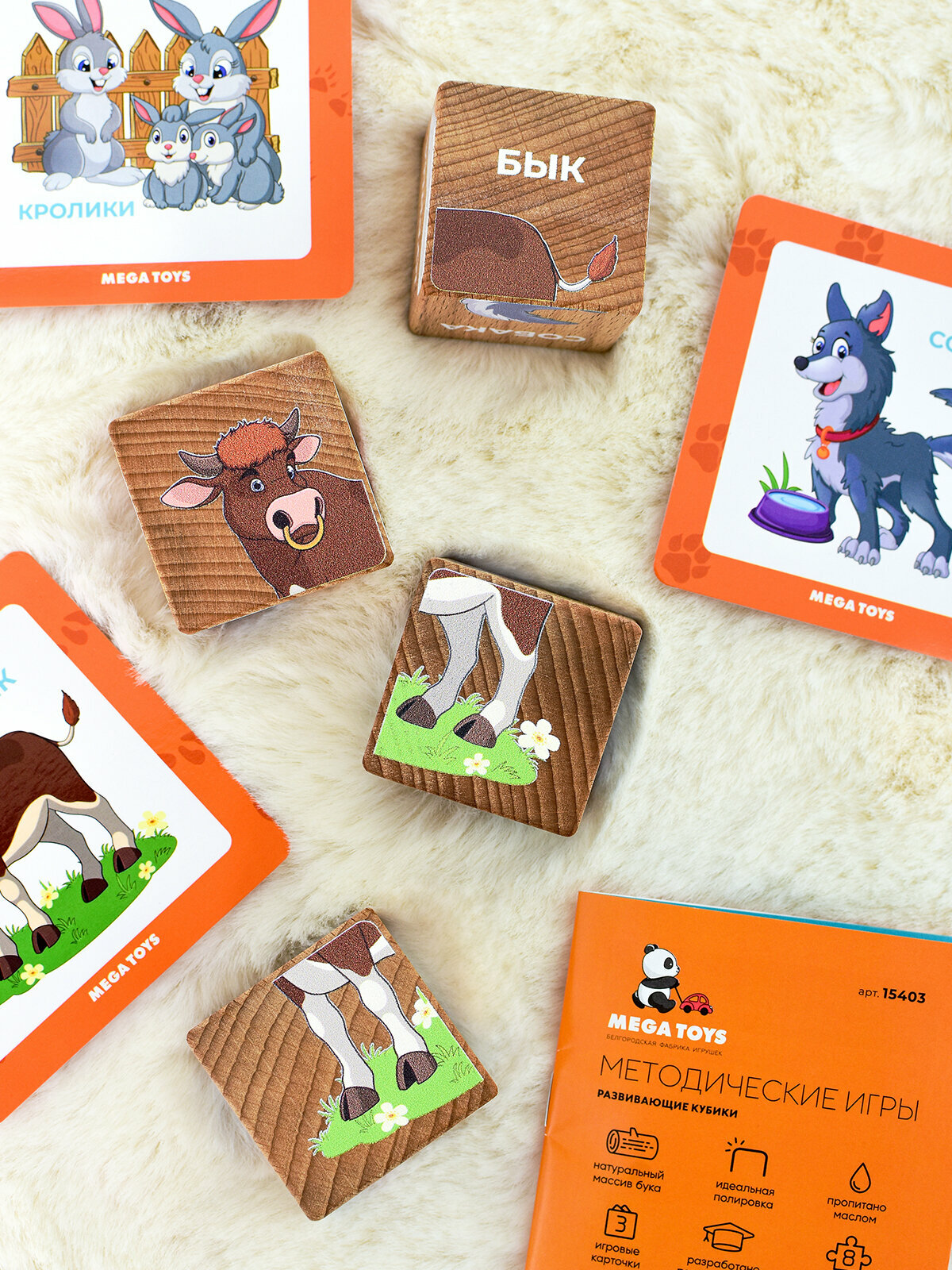 Купить Кубики детские деревянные с рисунками Домашние животные MEGA TOYS развивающие игрушки от 1 года / карточки и обучающие игры в наборе