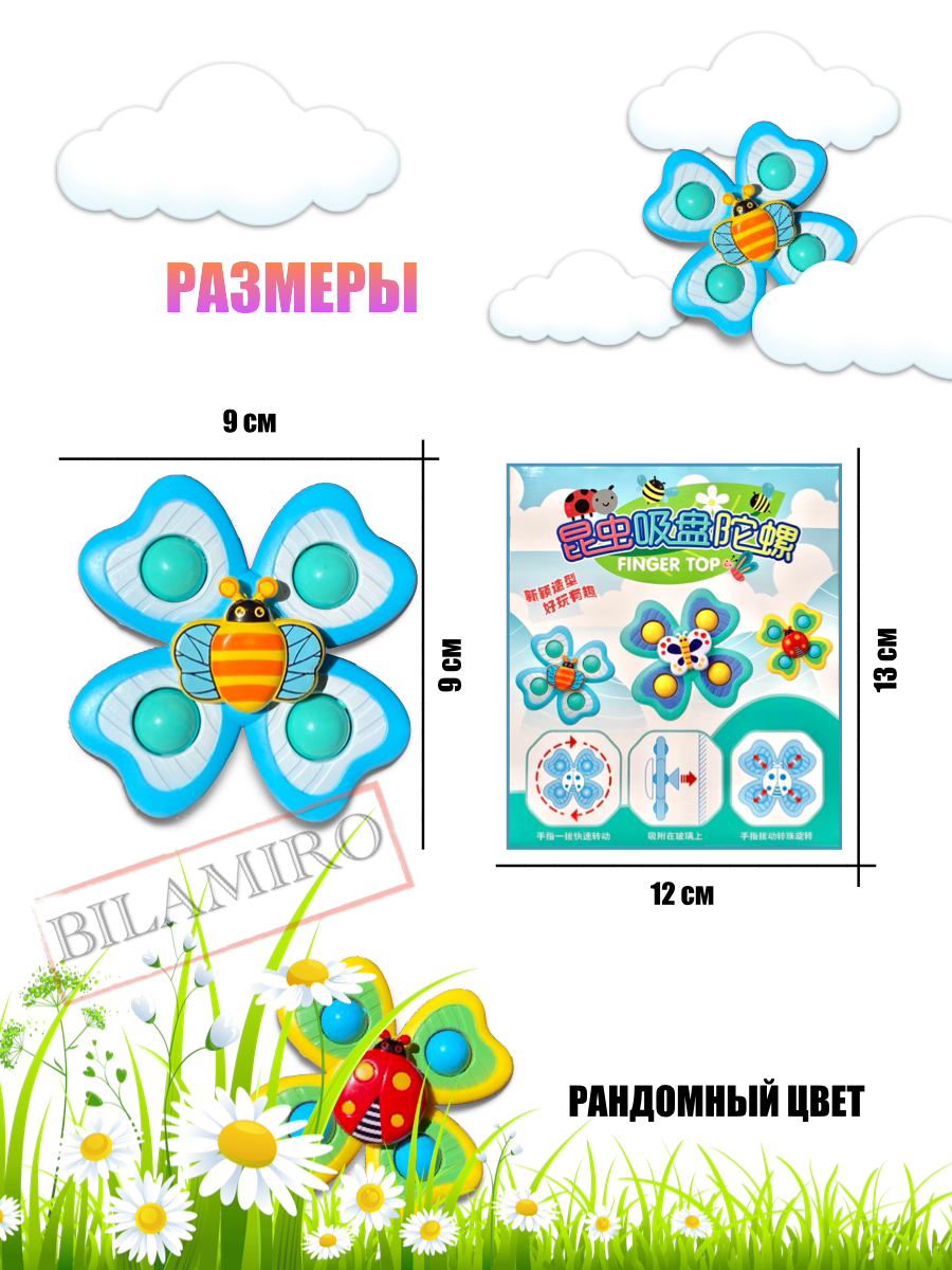 Рандомный цвет. Игрушки для девочек и мальчиков. Спиннер на присоске божья коровка, пчелка интересное: