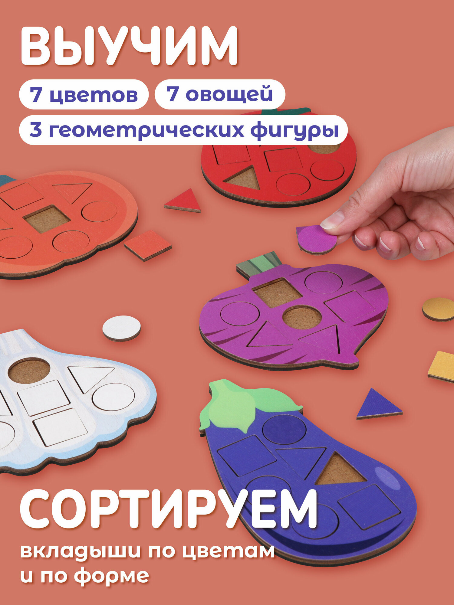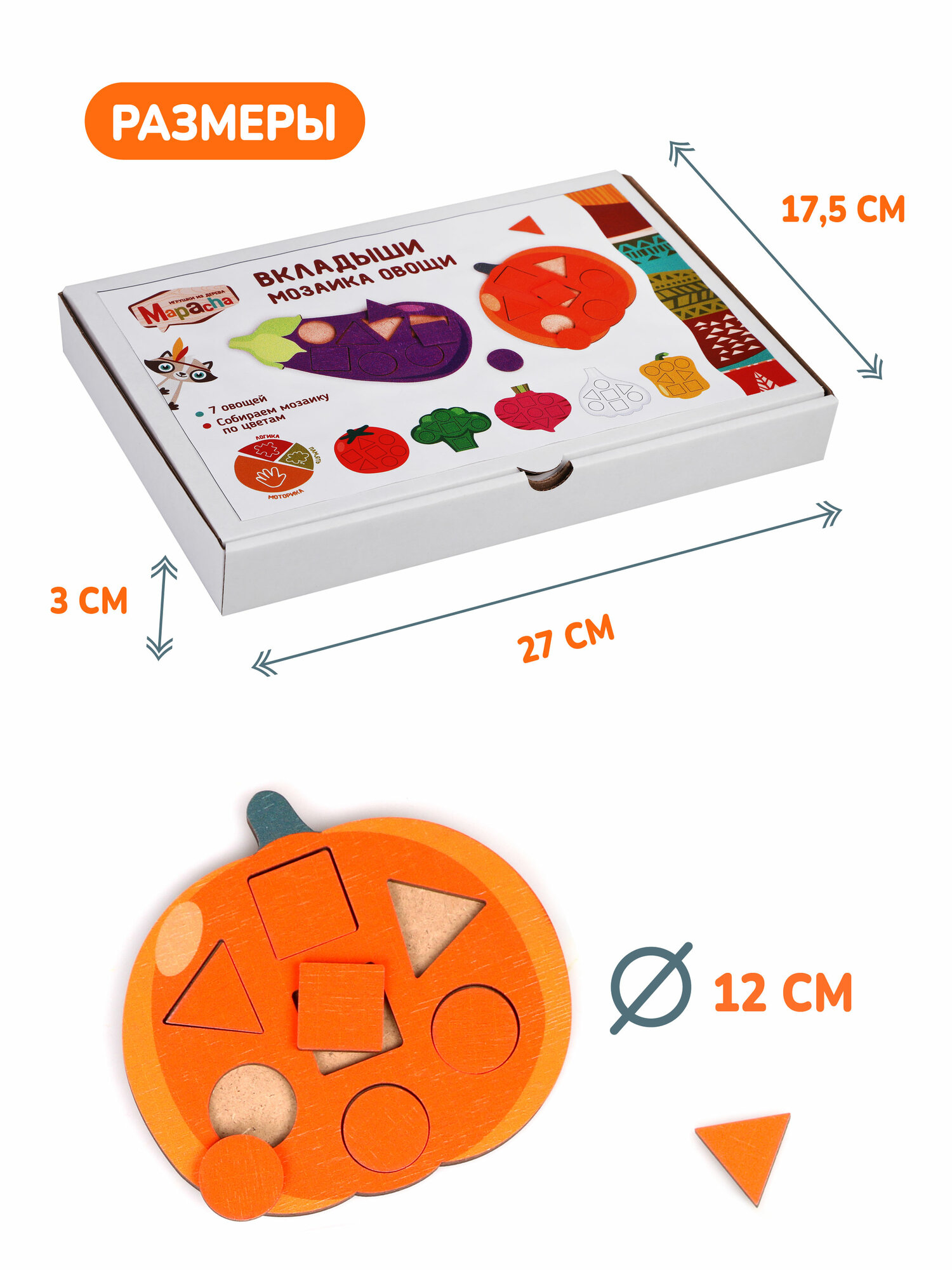 Купить Мозаика-вкладыши деревянная развивающая игра для детей, Mapacha Изучаем Овощи
