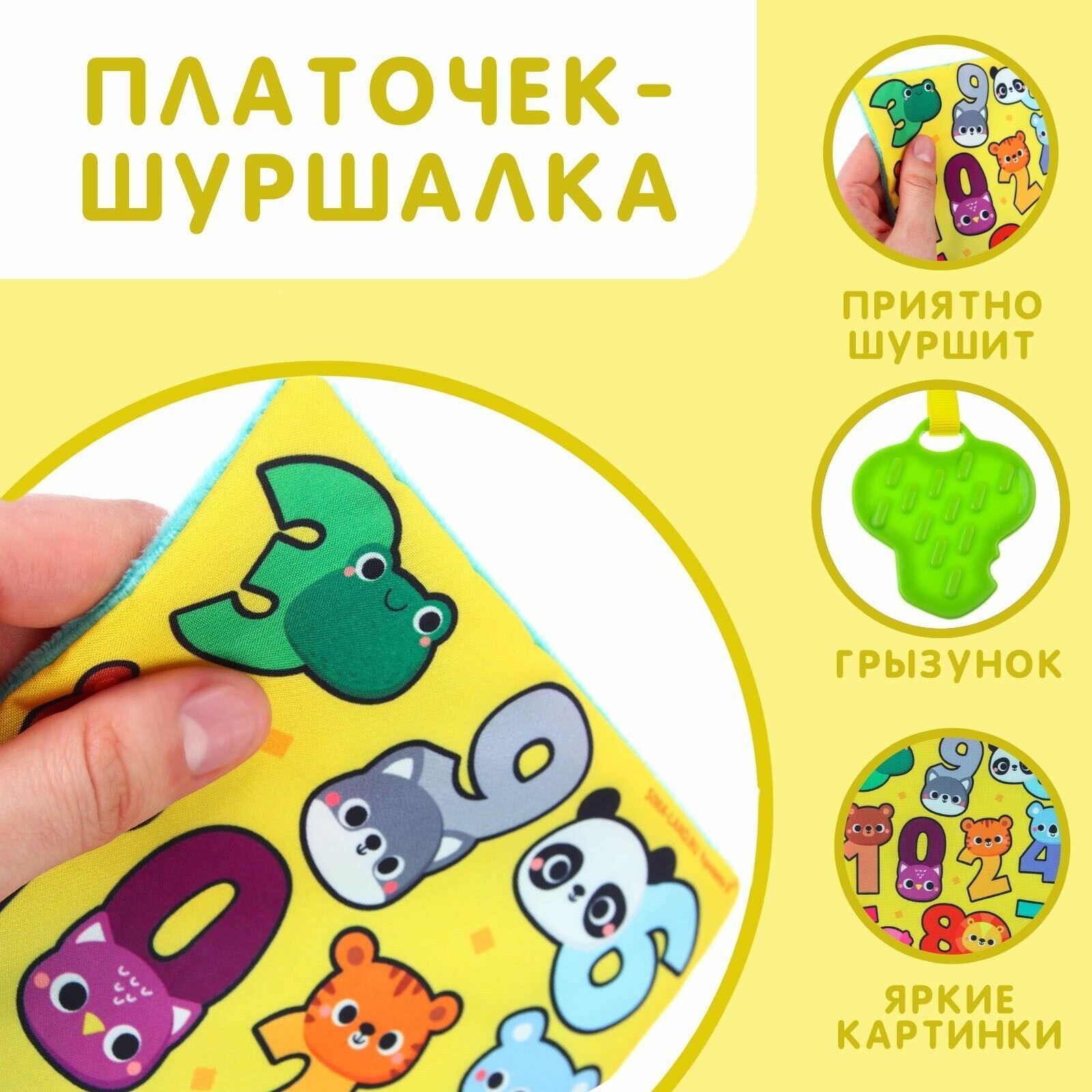 Мягкий платочек - шуршалка "Цифры", 15*15 см , грызунок. Первая игрушка для малыша, 0+ интересное: