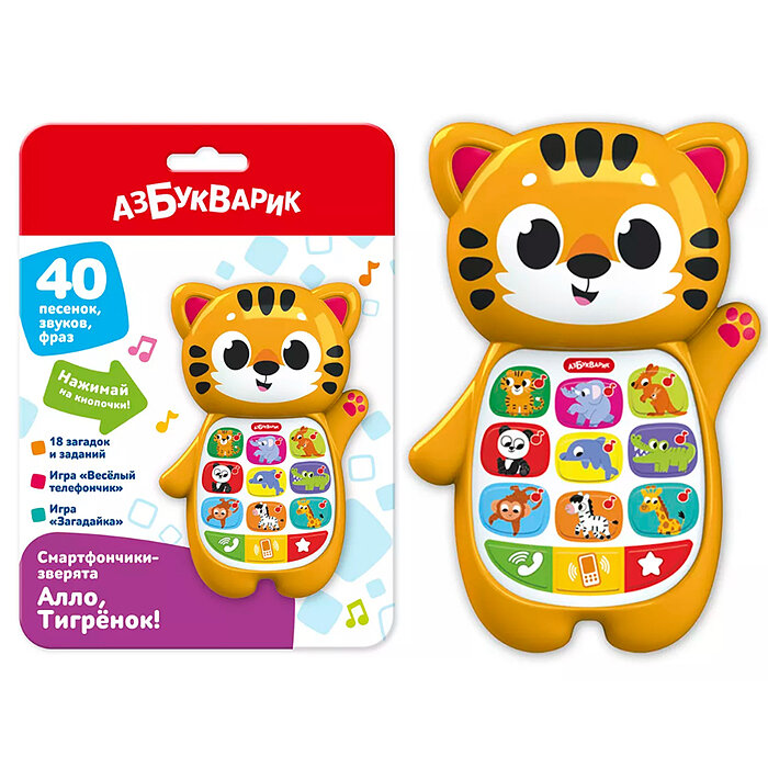 Купить Музыкальная игрушка Азбукварик смартфончики-зверята, телефончик " Алло, Тигренок !"