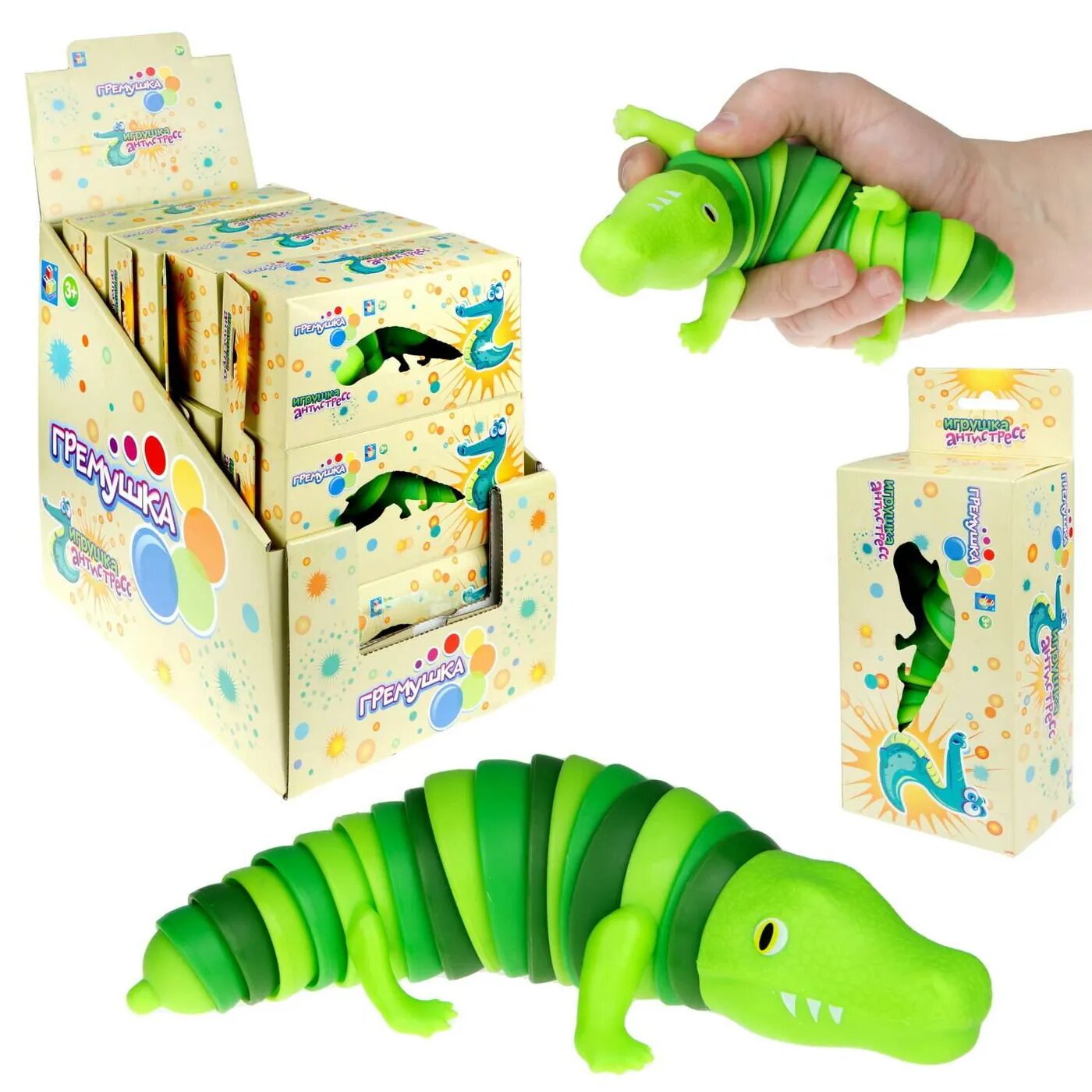 Купить Крокодил игрушка 1TOY Гремушка гусеница антистресс, детская тактильная игрушка для малышей, 21*5 см