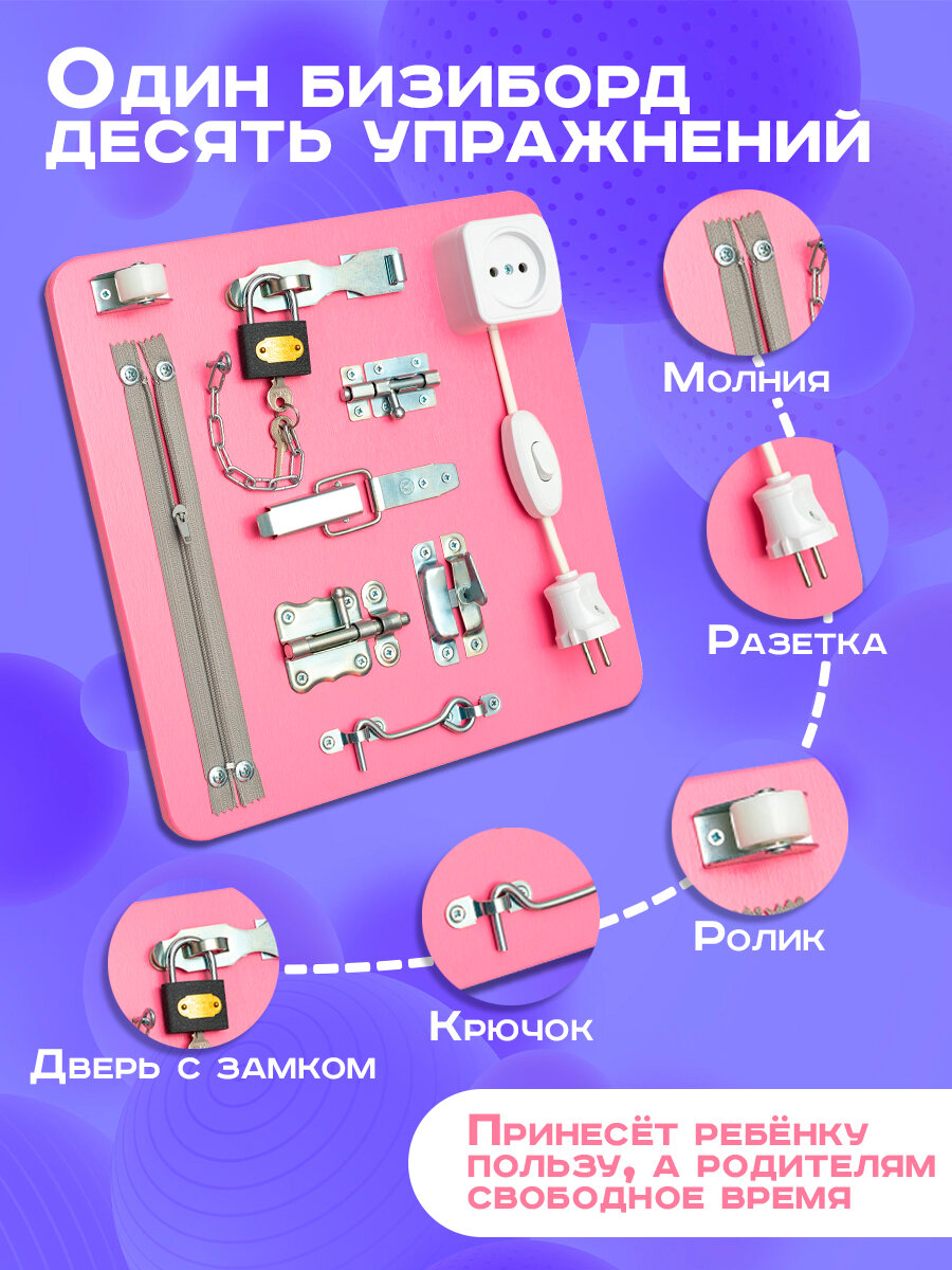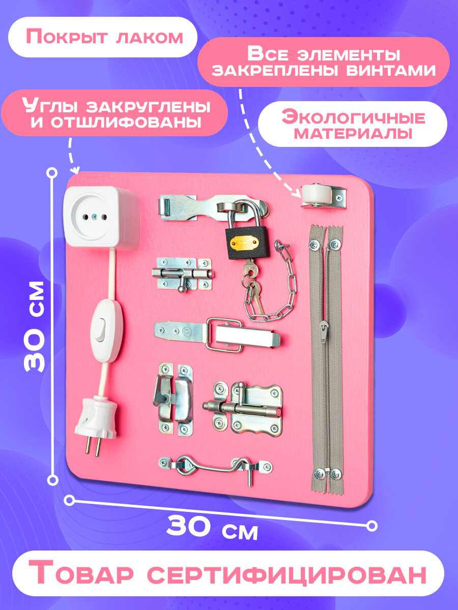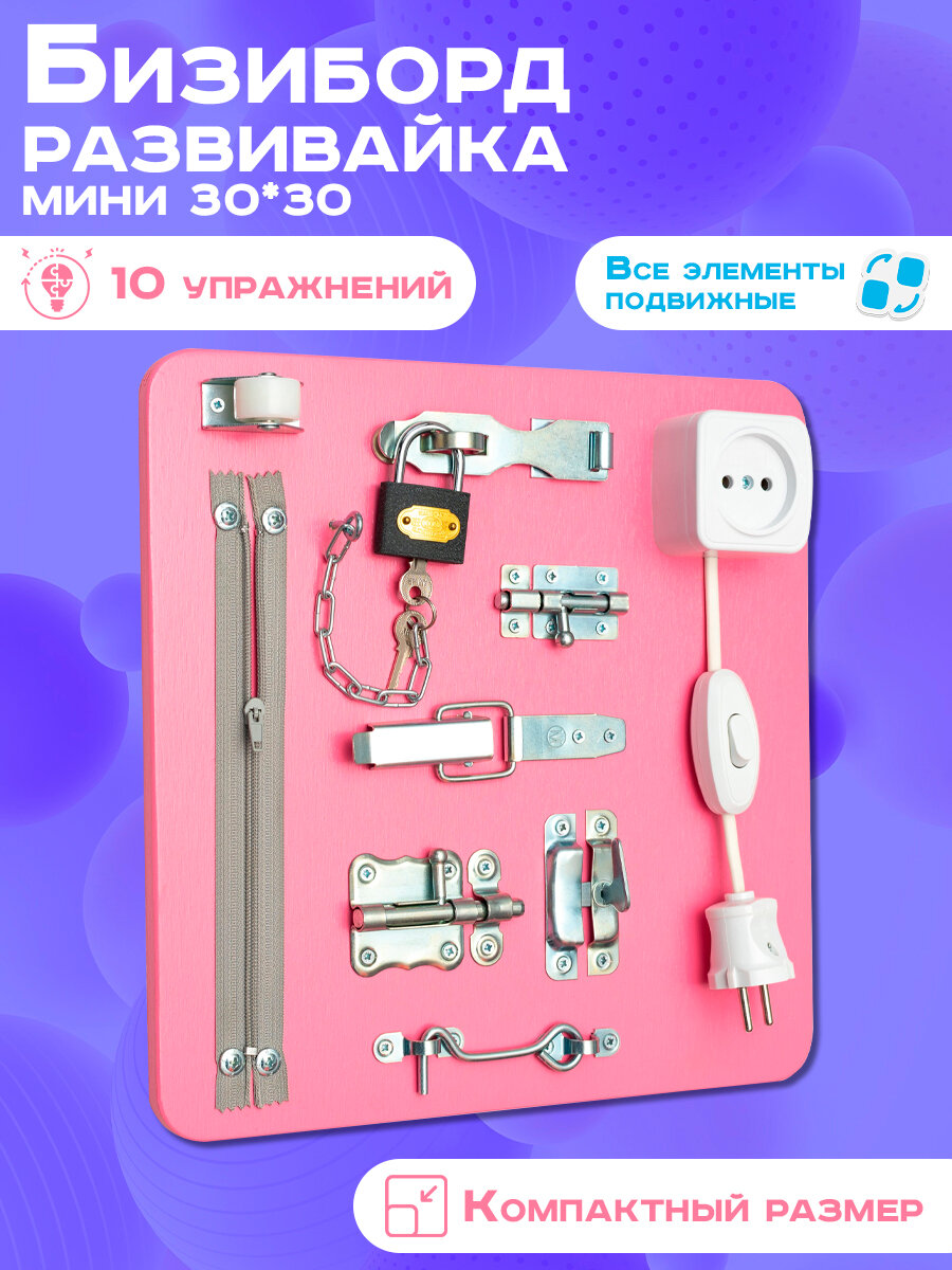 Бизиборд "Мастерская бизибордов Развивайка" Мини 30х30 см розовый интересное: