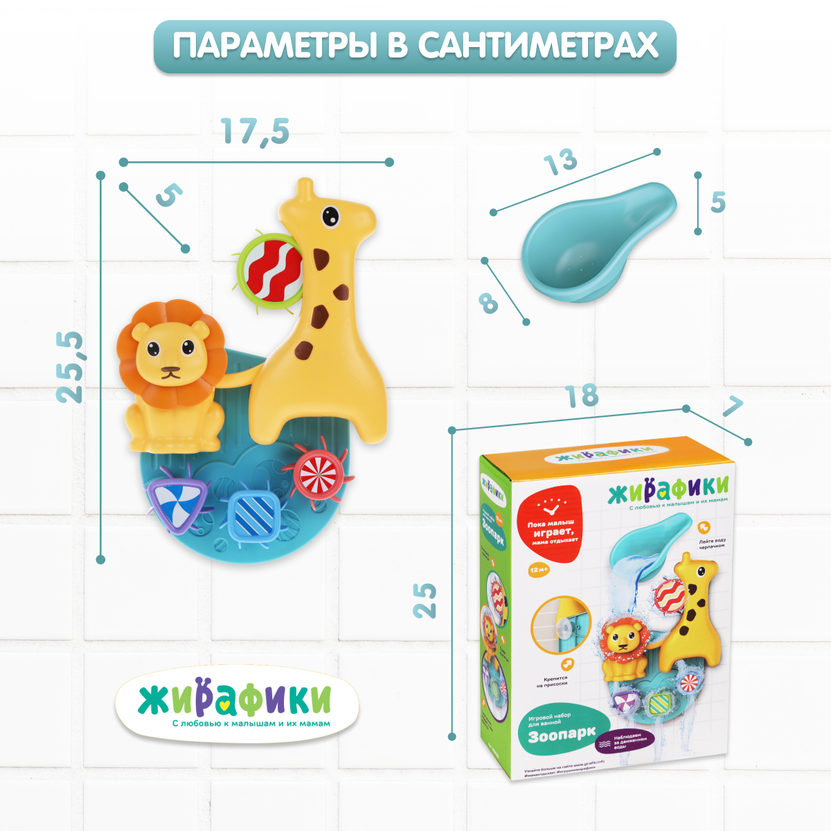 Купить Игрушка для ванной и купания Жирафики "Зоопарк" крутятся под струей воды
