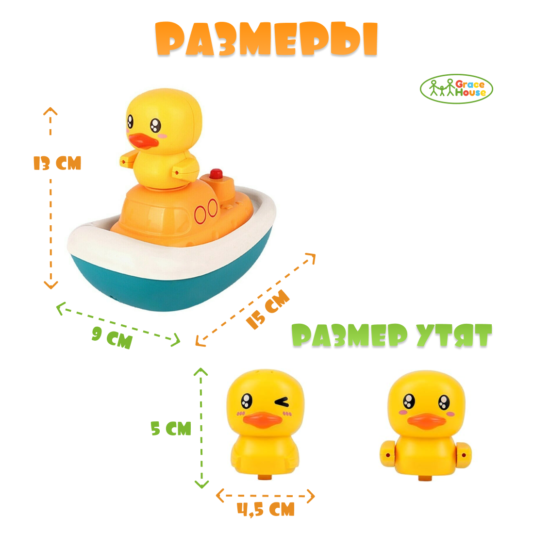 Детская игрушка для ванной и бассейна утки на кораблике с фонтаном GRACE HOUSE интересное: