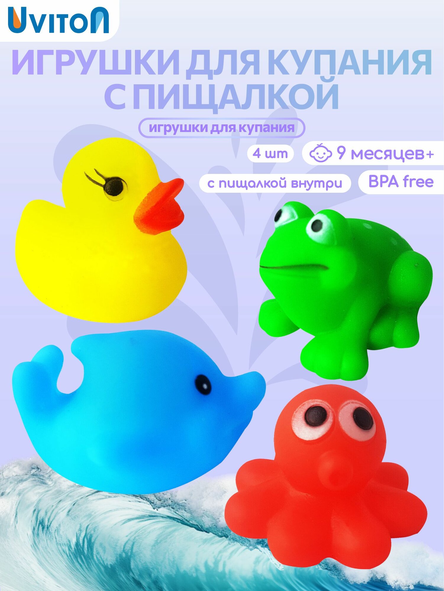 Игрушки для купания в ванной с пищалкой 4 шт интересное: