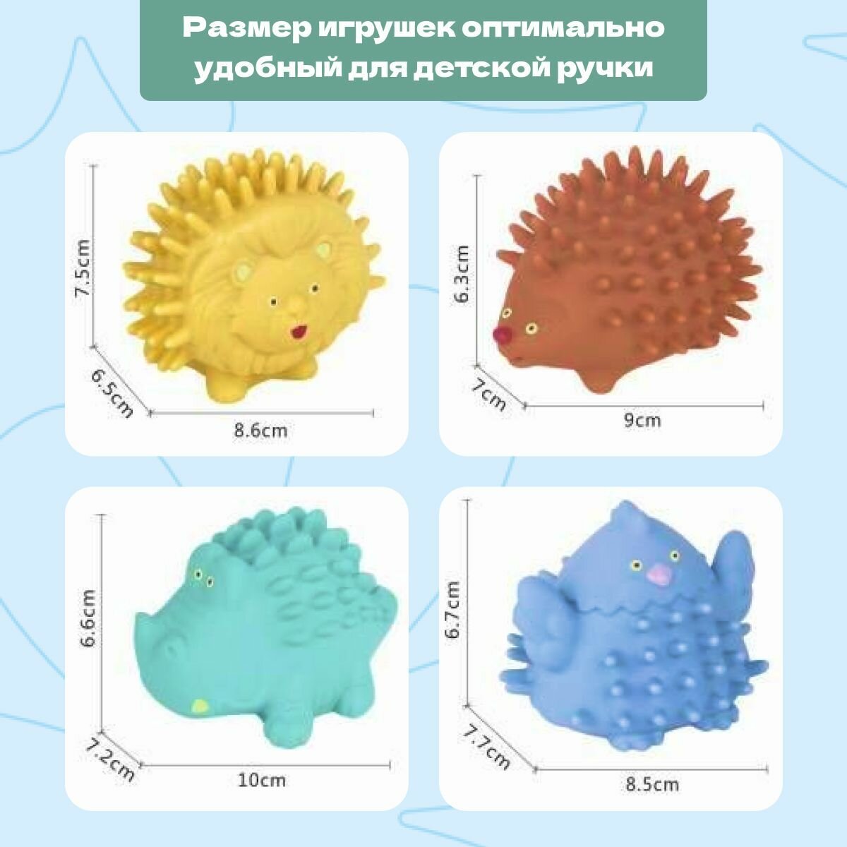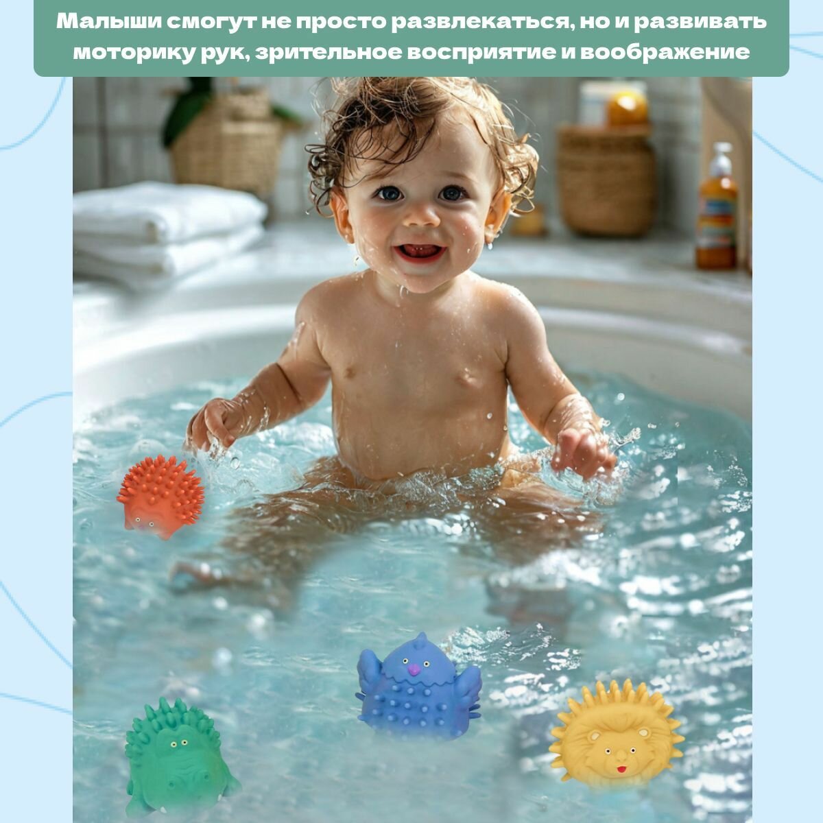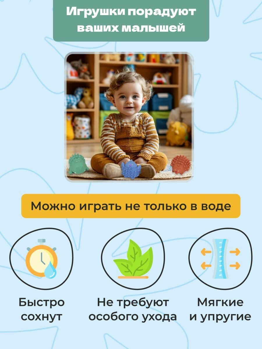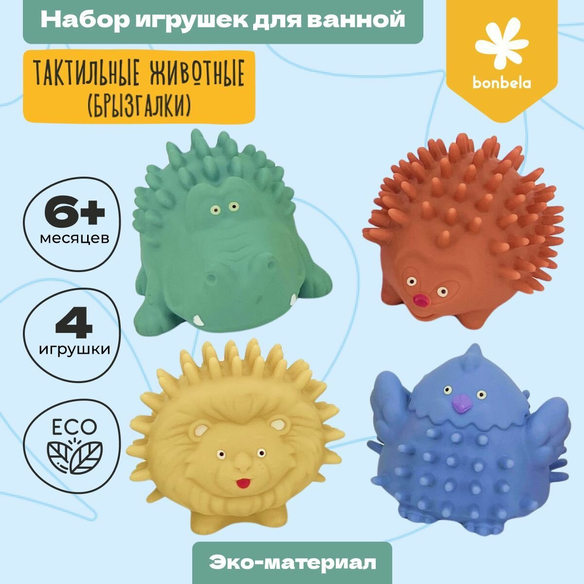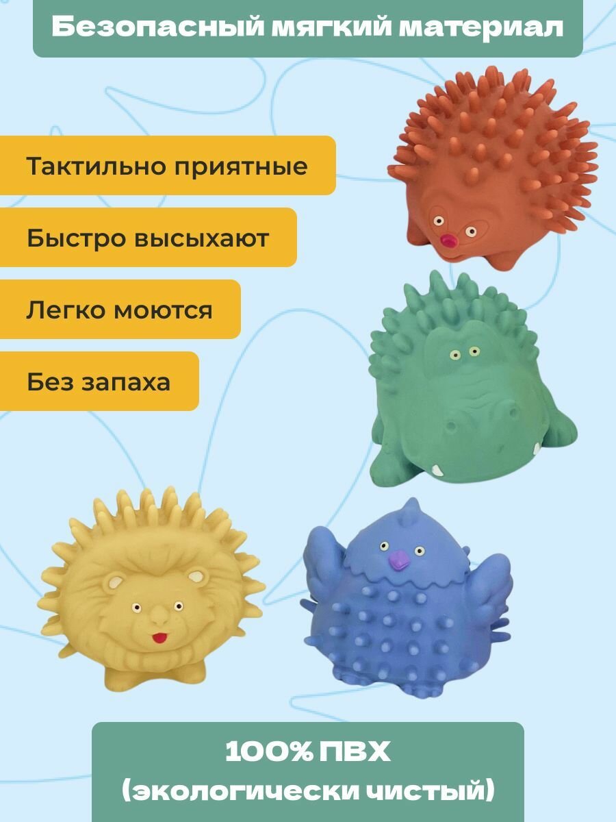 Игрушки для ванной (брызгалки) 4 штуки Bonbella "Тактильные животные" интересное: