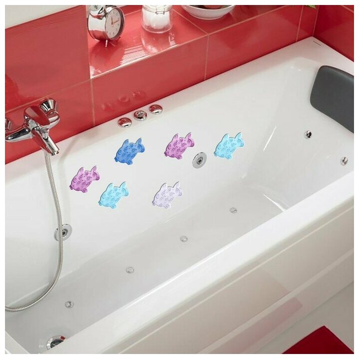 Набор мини-ковриков для ванны на присосках Доляна «Рыбка», 11×12 см, 6 шт, цвет микс, 557232 интересное: