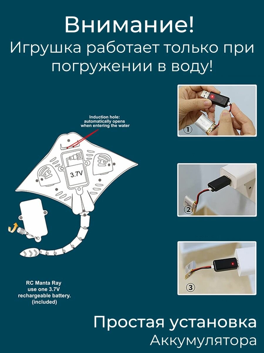 Игрушка для ванной Скат на радиоуправлении, 35 см, плавает в воде интересное: