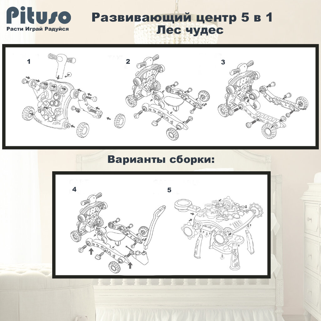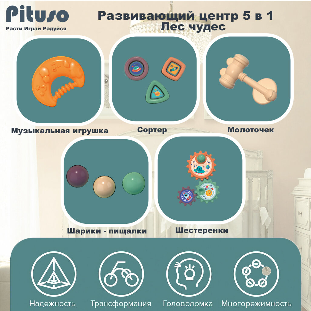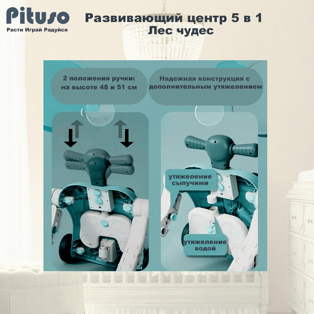 Развивающий центр Pituso Ходунки-каталка-столик-самокат-беговел 5в1 Лес чудес интересное:
