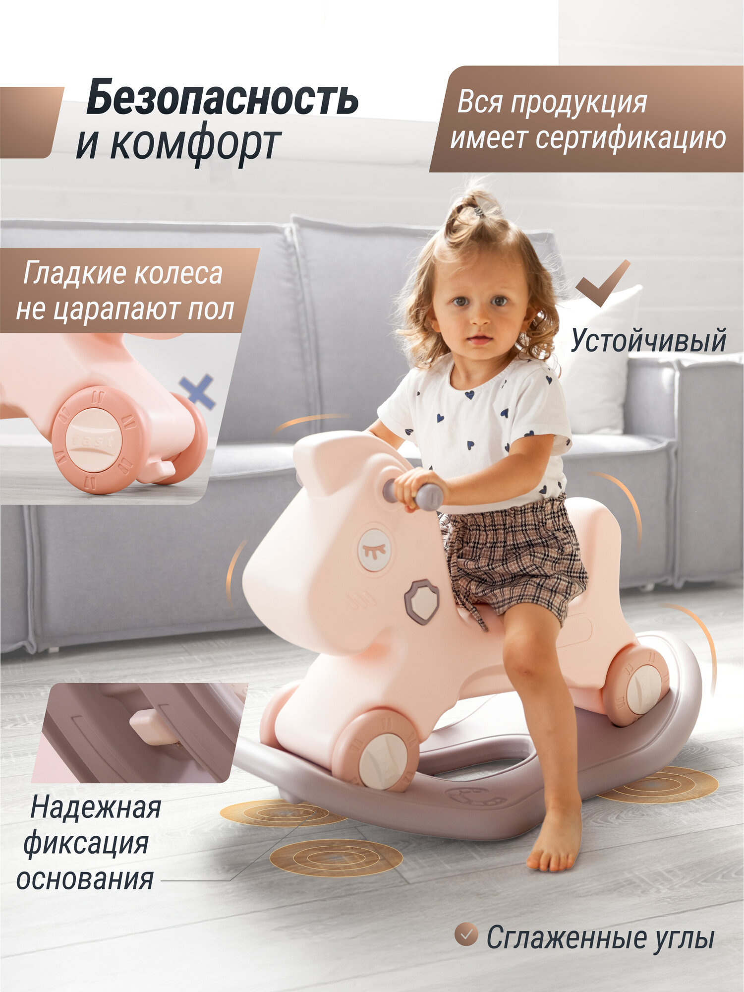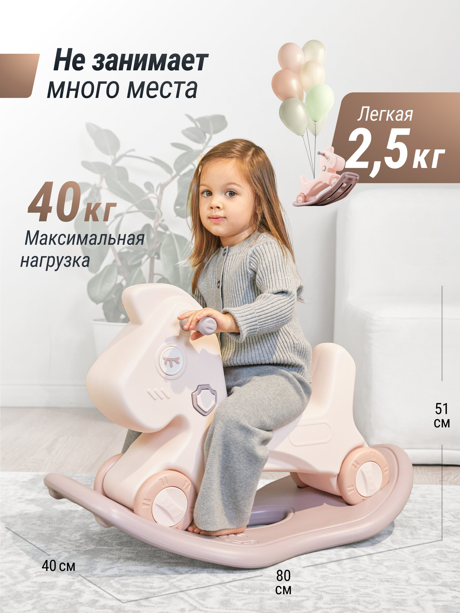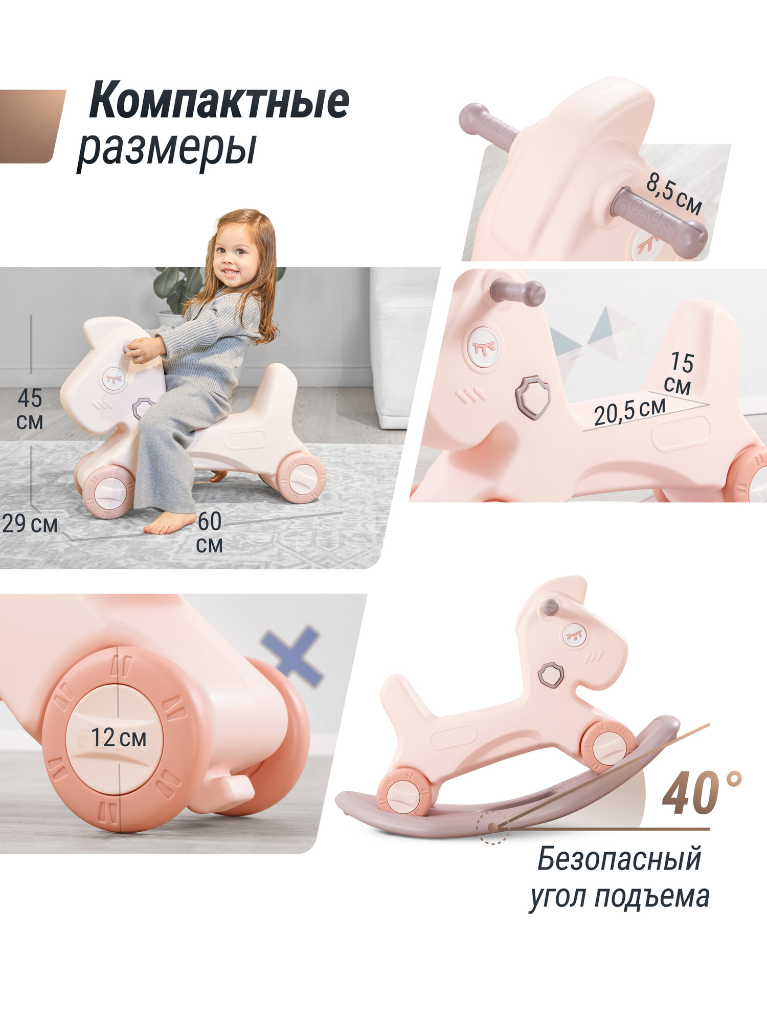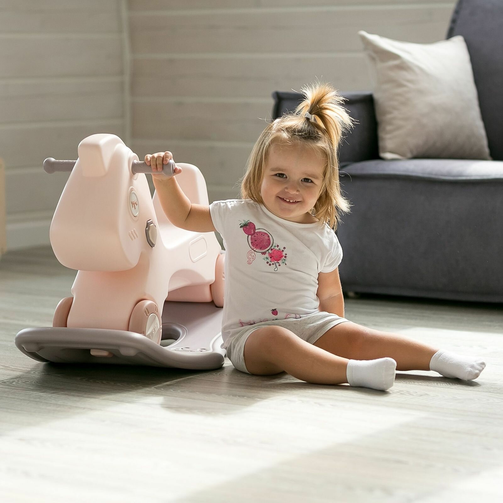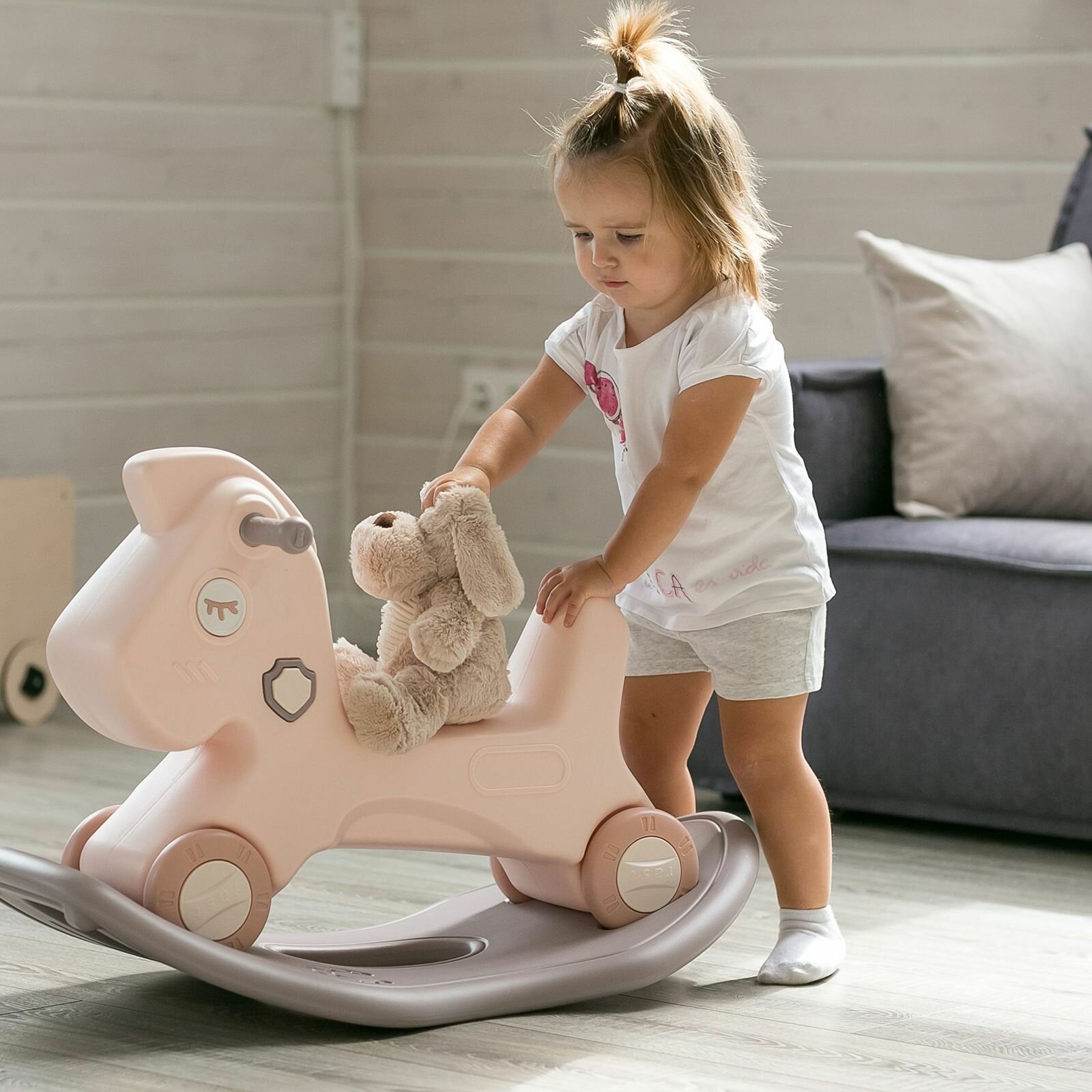 Купить Лошадка качалка беговел UNIX Kids, розовый, трансформер для детей, для мальчиков, девочек, пластиковая