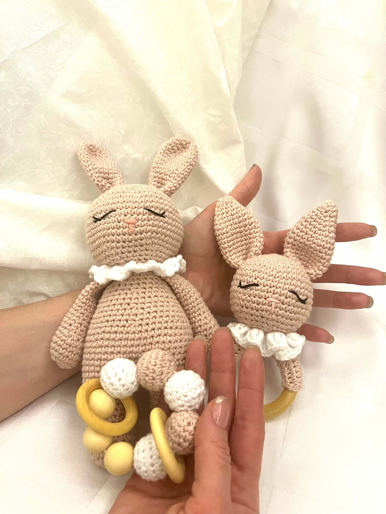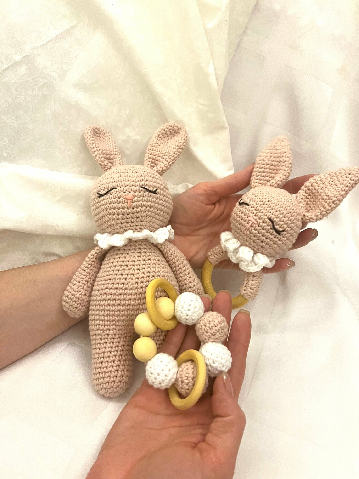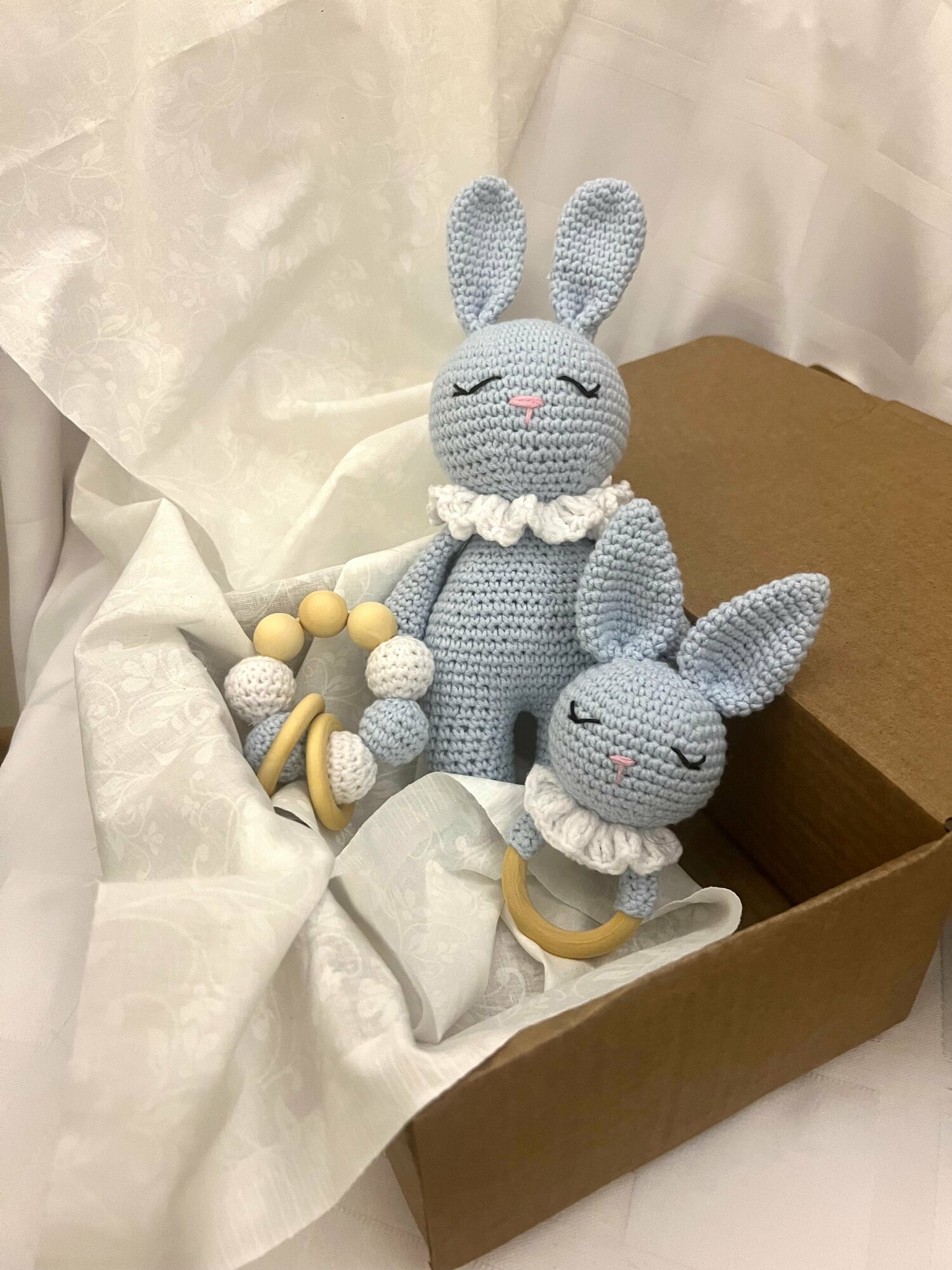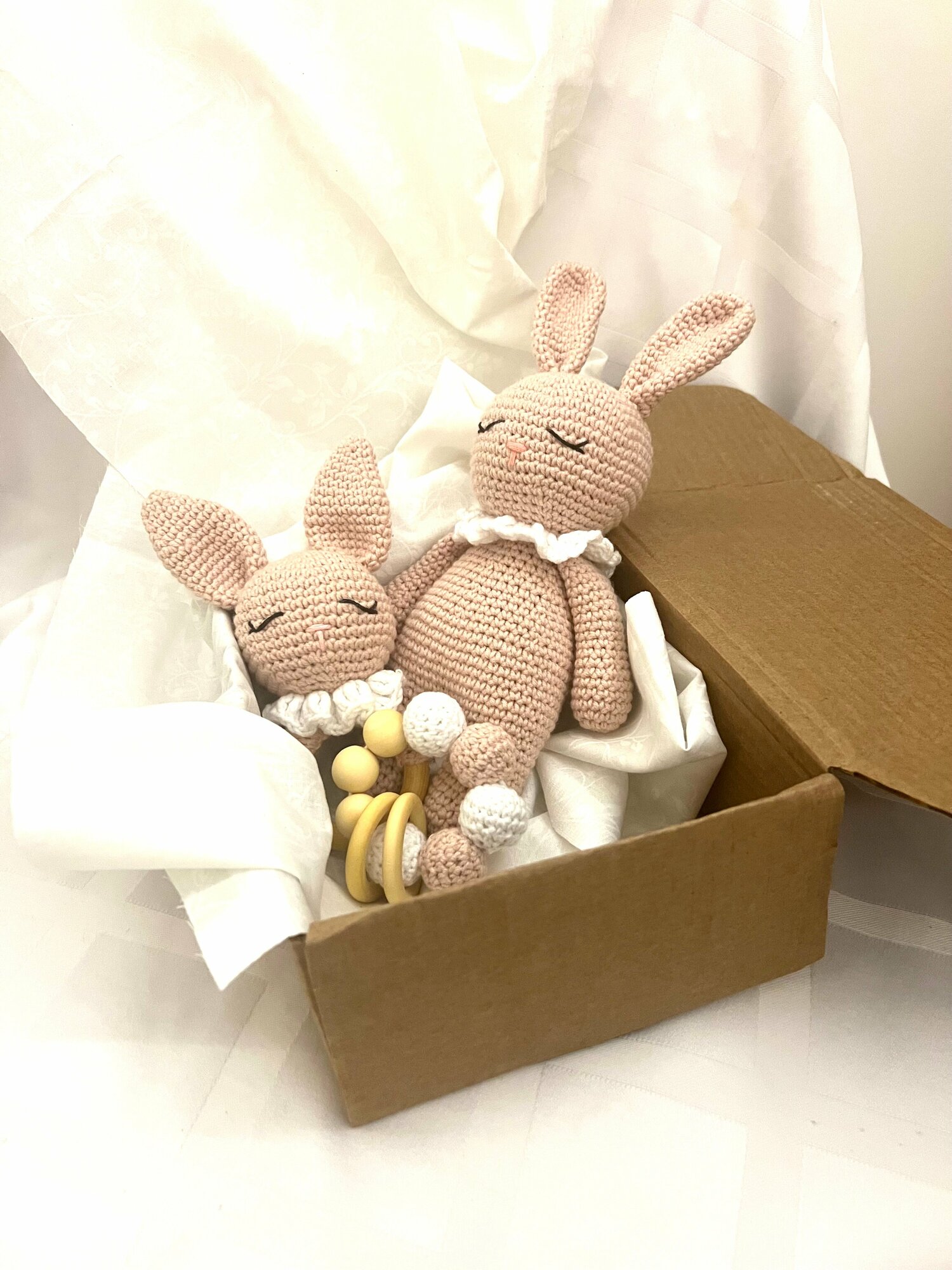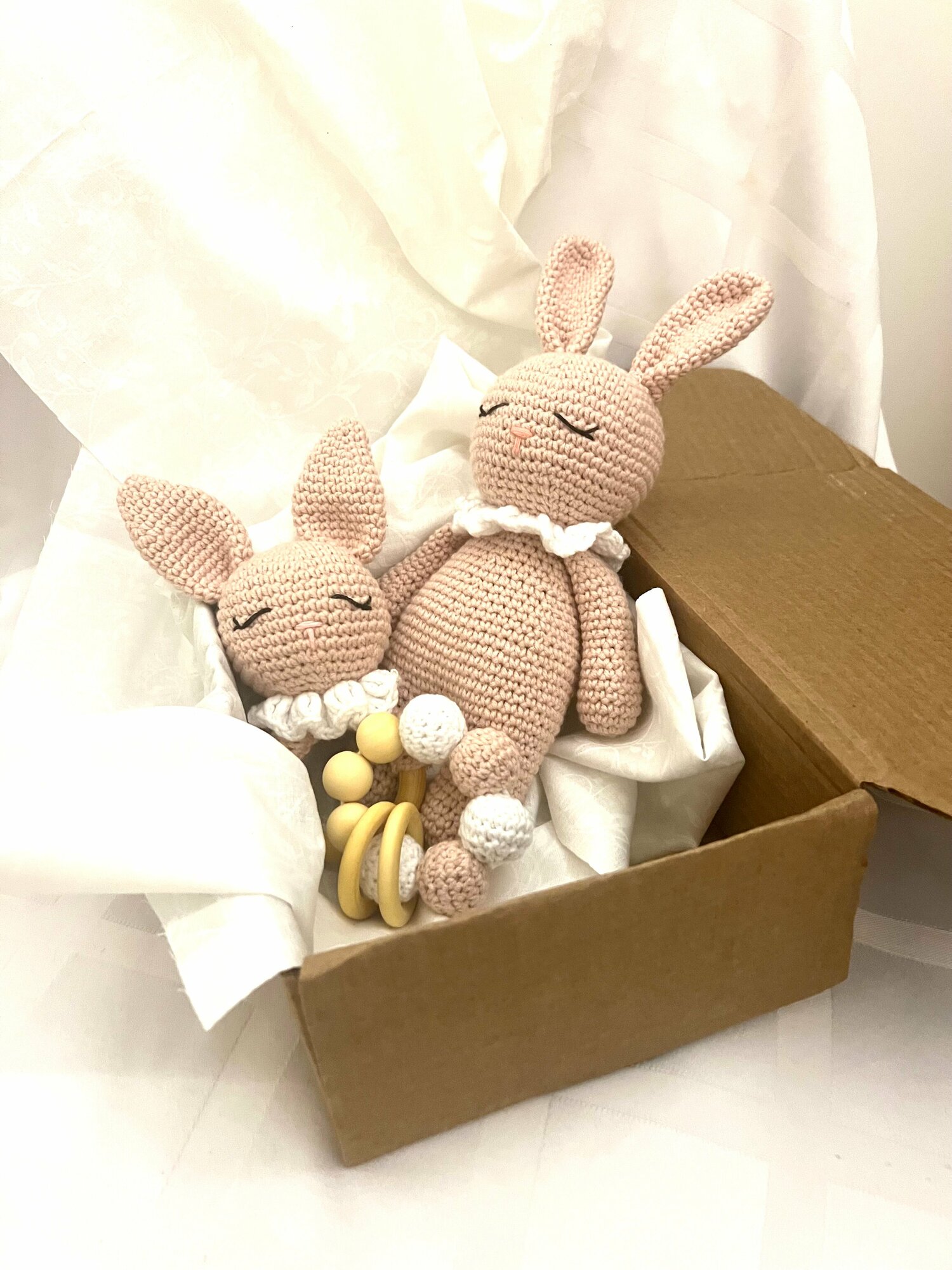 Купить Подарочный набор для новорожденных "Зайчишки": мягкая игрушка, погремушка, прорезыватель для зубов розовый