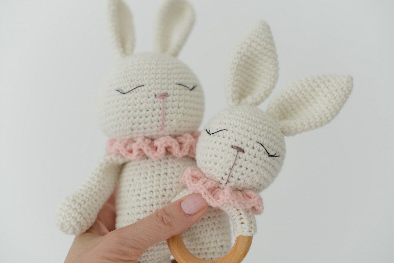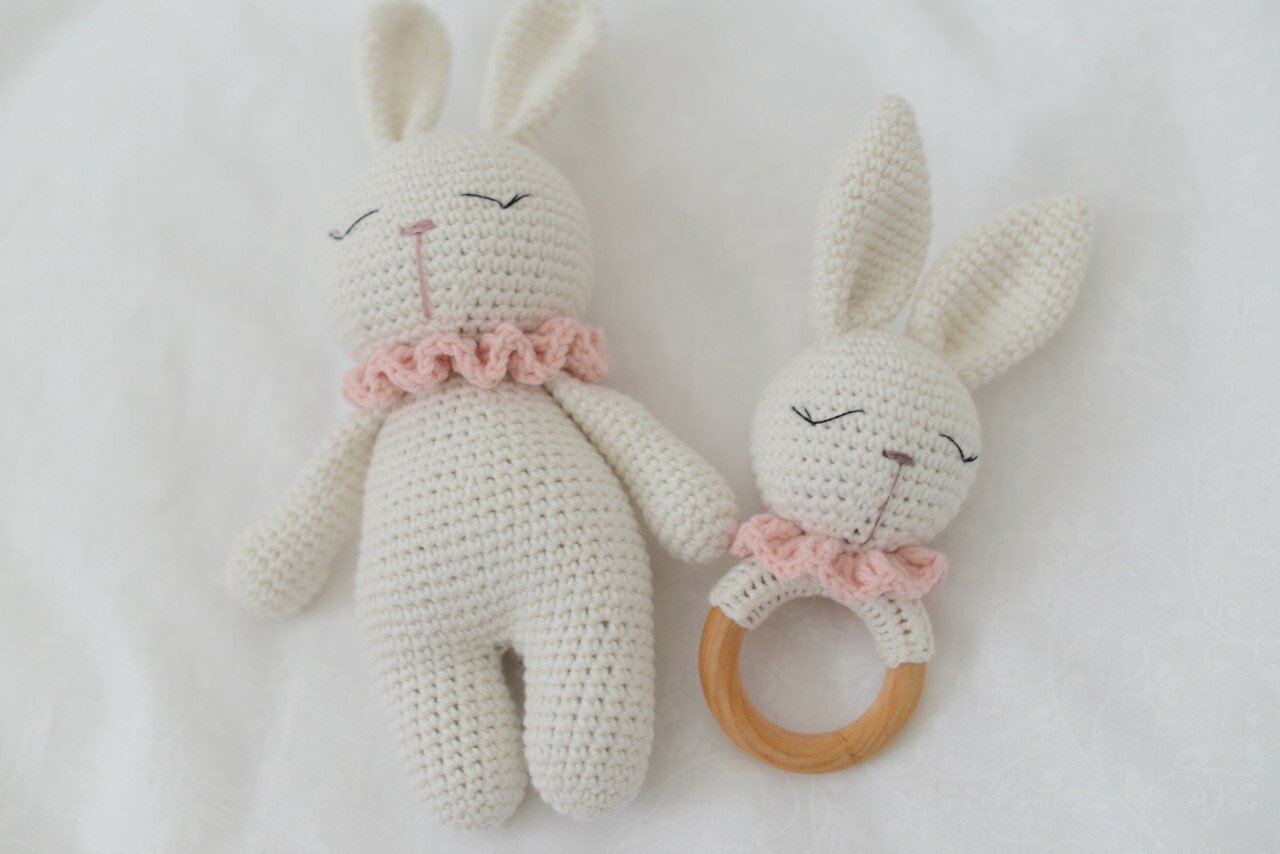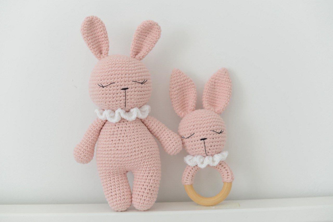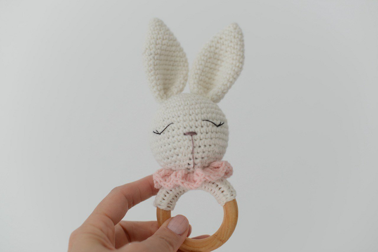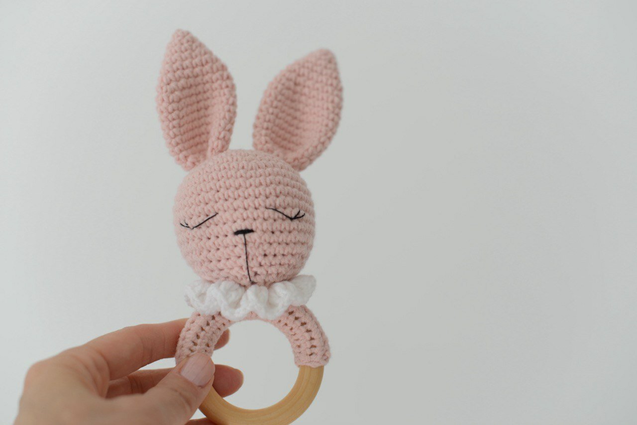 Подарочный набор для новорожденных "Зайчишки": мягкая игрушка, погремушка, прорезыватель для зубов розовый интересное: