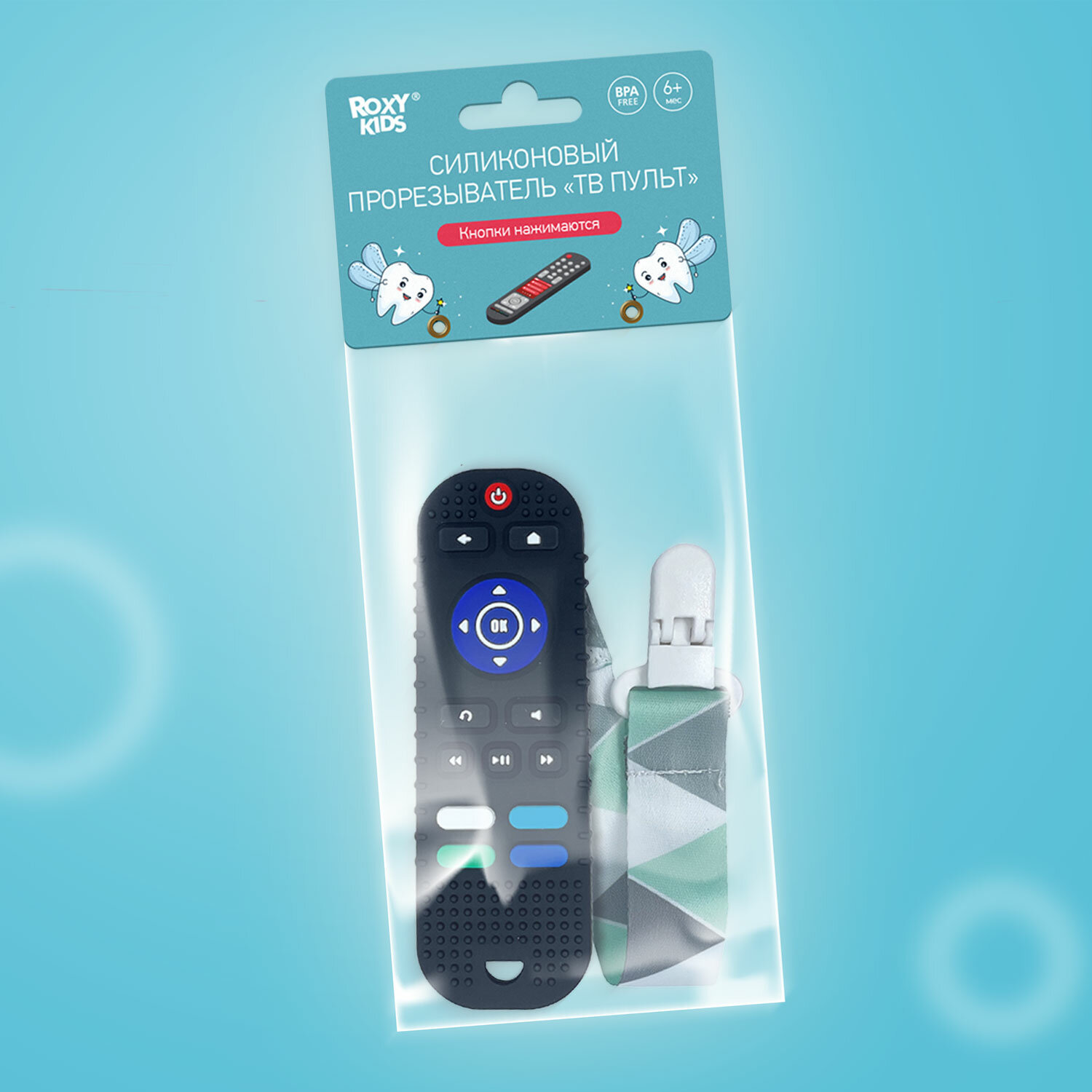 Купить Силиконовый прорезыватель "ТВ Пульт" с держателем от ROXY KIDS, цвет черный