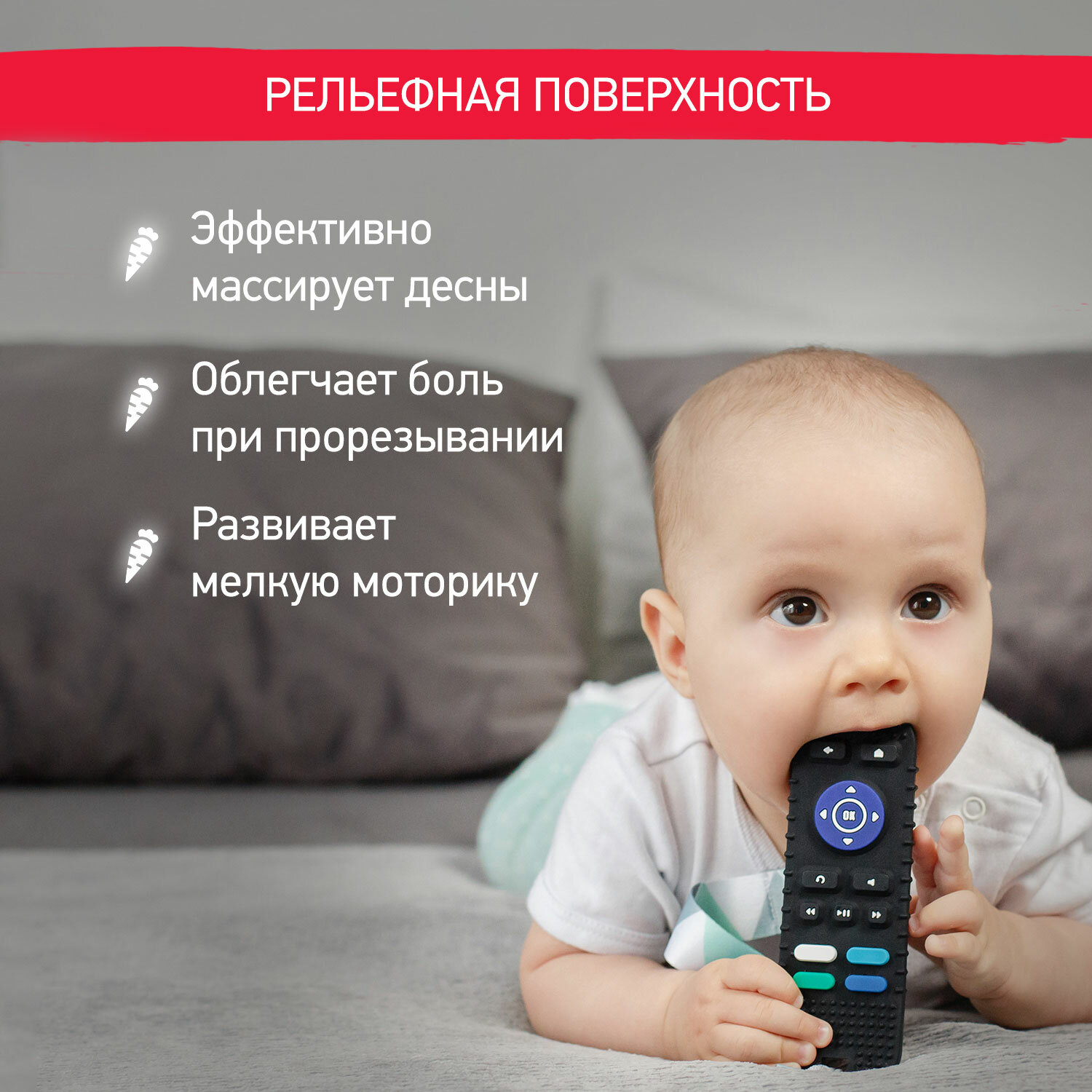 Силиконовый прорезыватель "ТВ Пульт" с держателем от ROXY KIDS, цвет черный интересное: