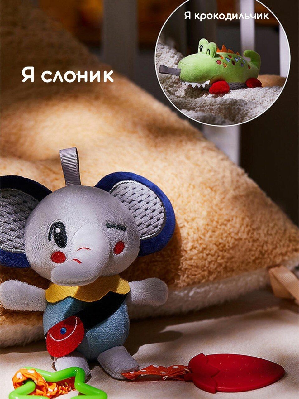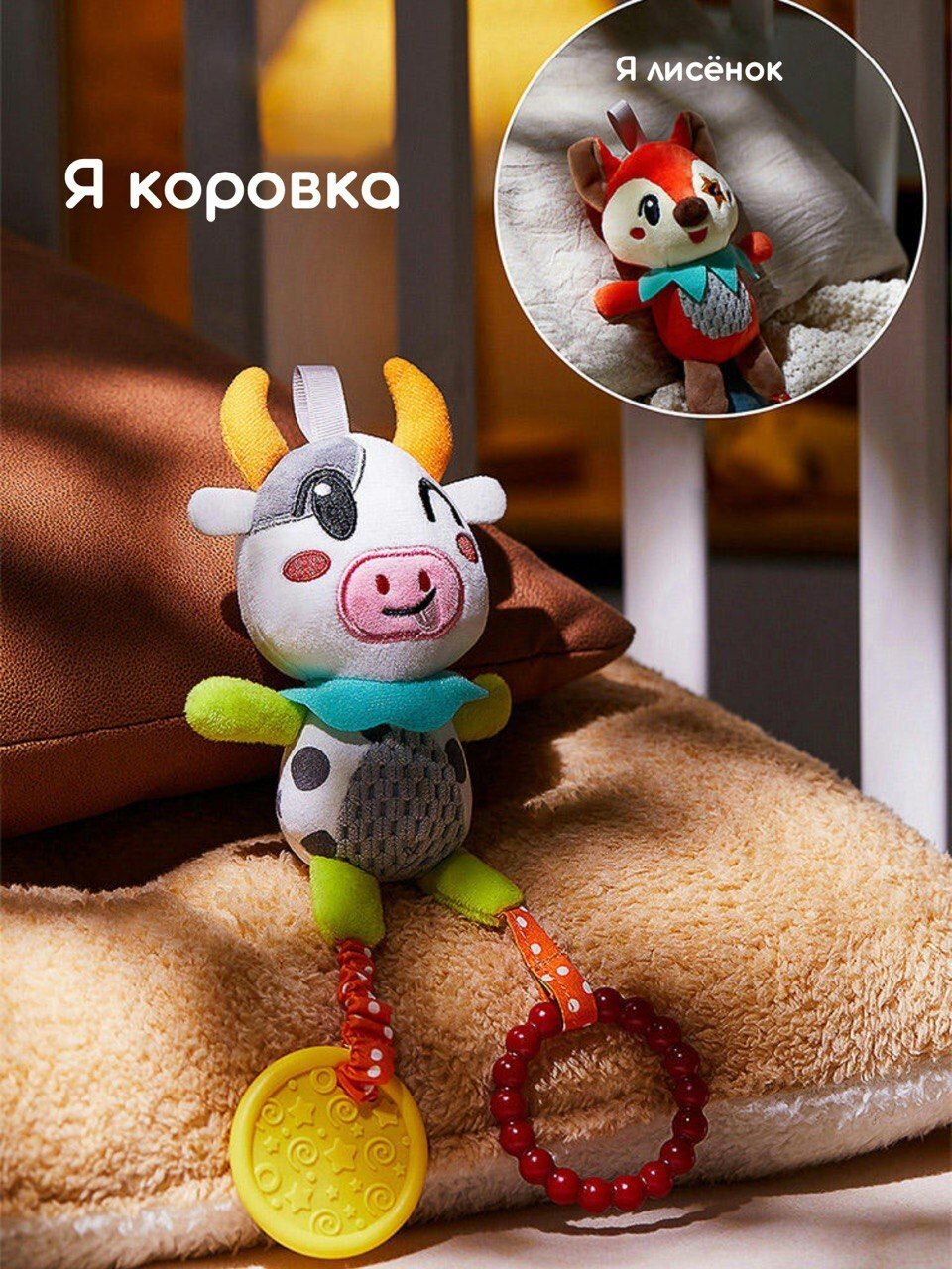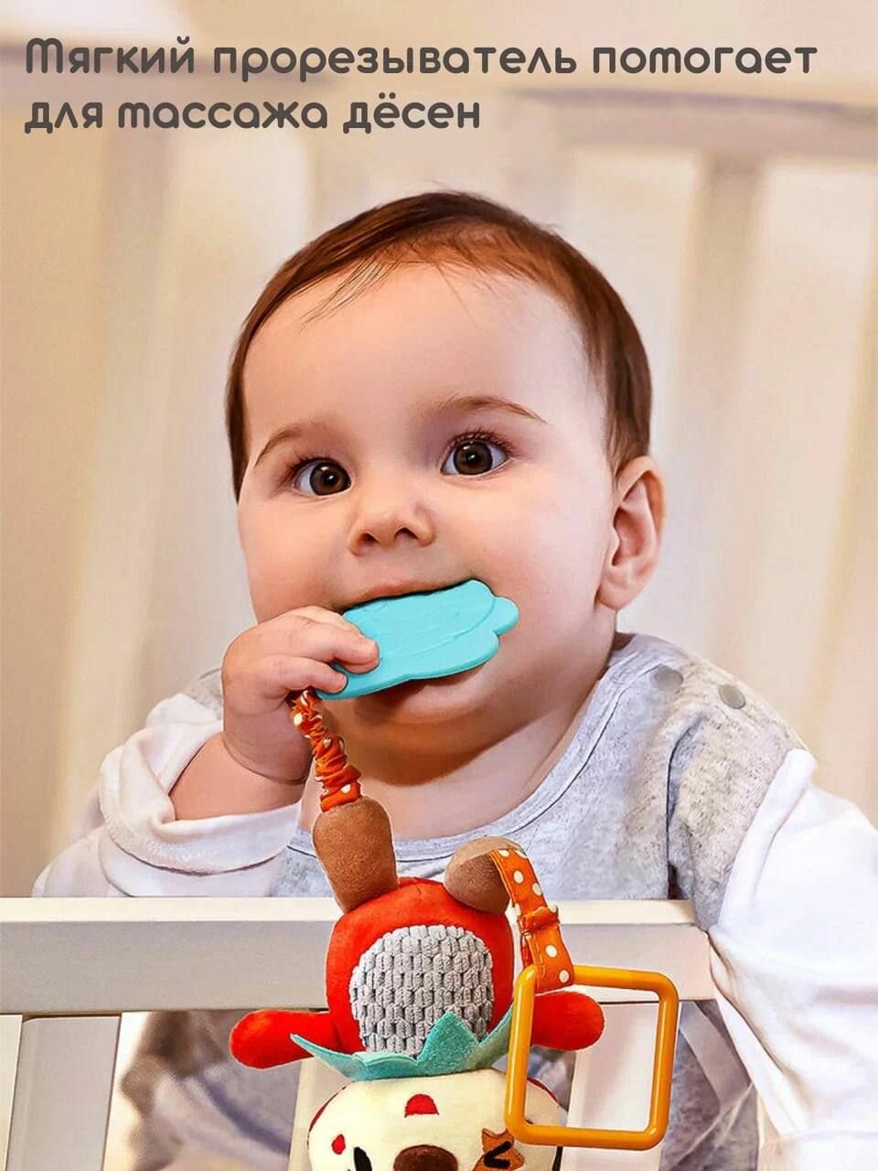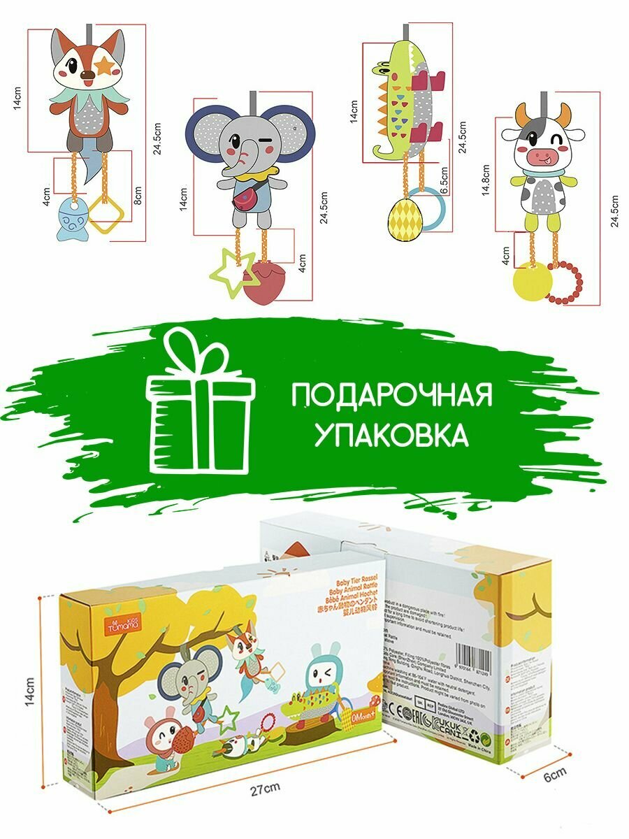 Подвесная погремушка Крутые зверята для мальчиков и девочек на коляску и кроватку. Набор 4 шт. Развивающие монтессори игрушки для новорожденных от 0+. Дуга игровая интересное: