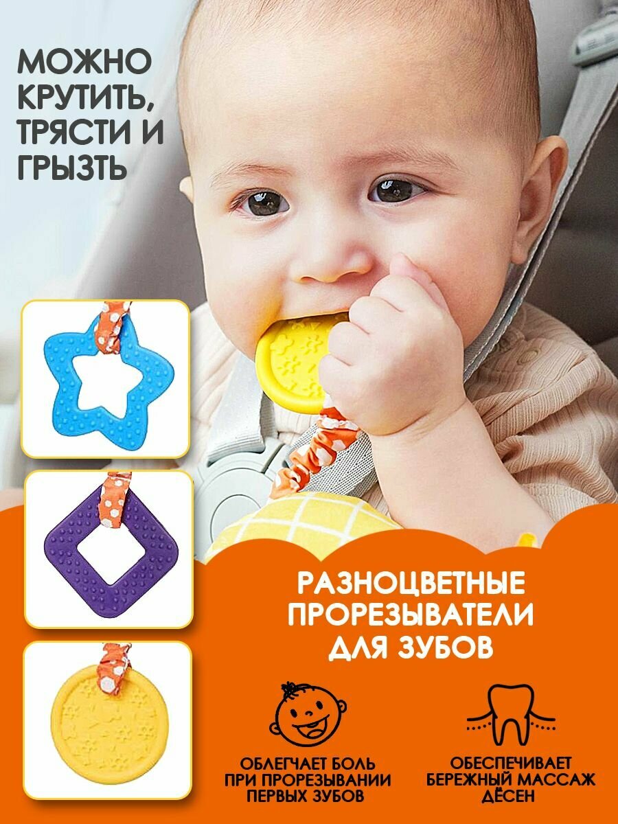 Подвесная погремушка Крутые зверята для мальчиков и девочек на коляску и кроватку. Набор 4 шт. Развивающие монтессори игрушки для новорожденных от 0+. Дуга игровая