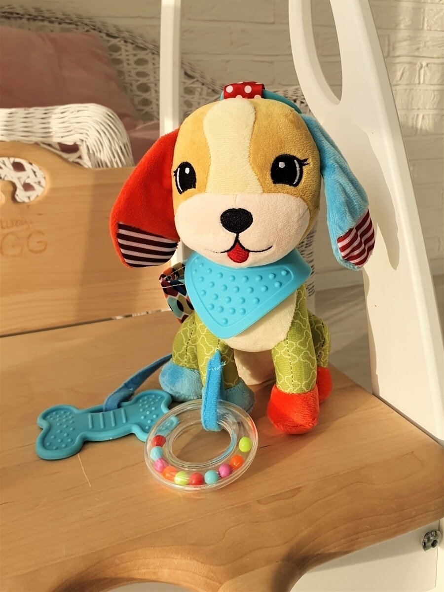 Купить Игрушка на коляску подвеска с прорезывателем Собачка