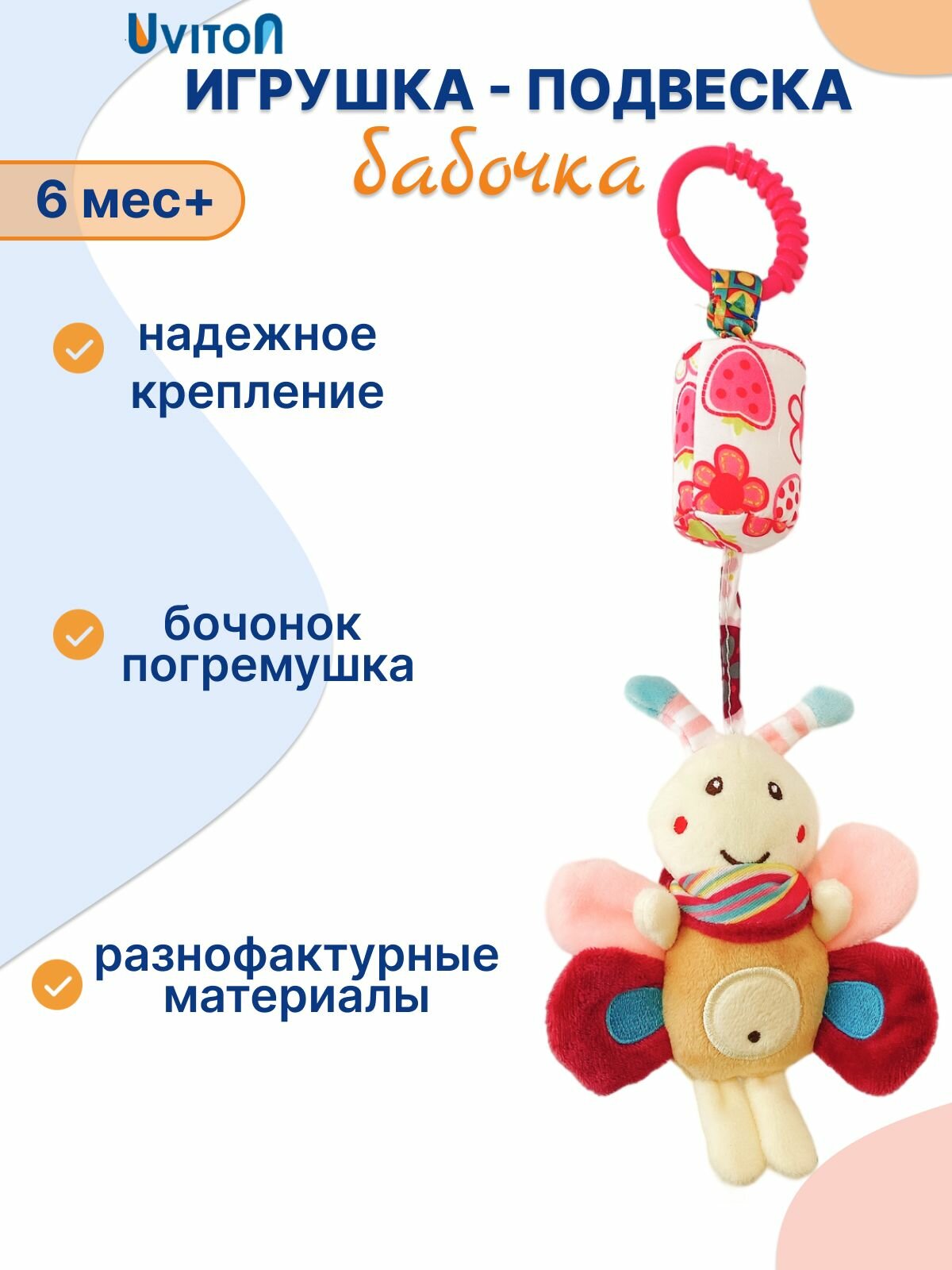 Игрушка погремушка с креплением от Uviton "Бабочка". Для новорожденных интересное: