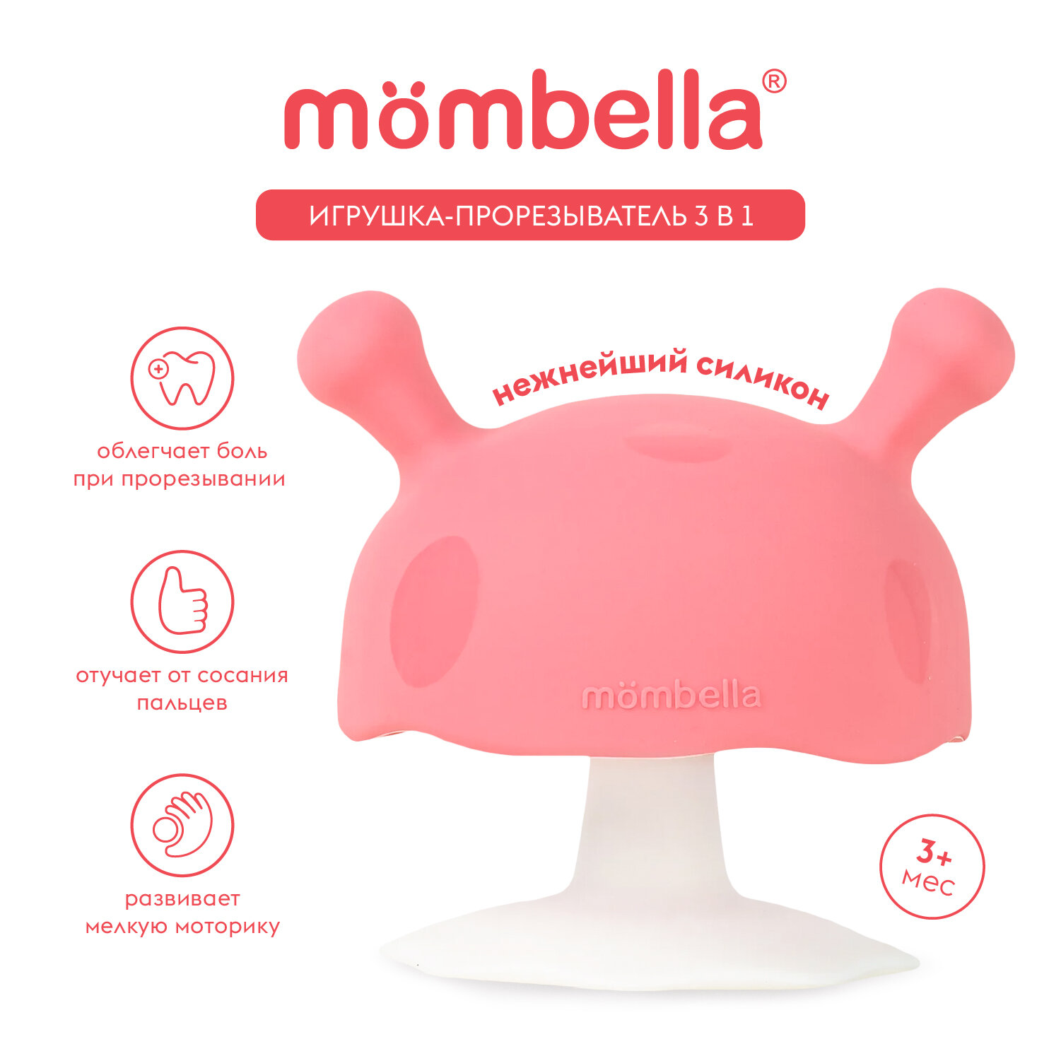 Купить Прорезыватель грызунок для зубов Грибочек 3в1 Mombella, 3+ мес, силиконовый, розовый