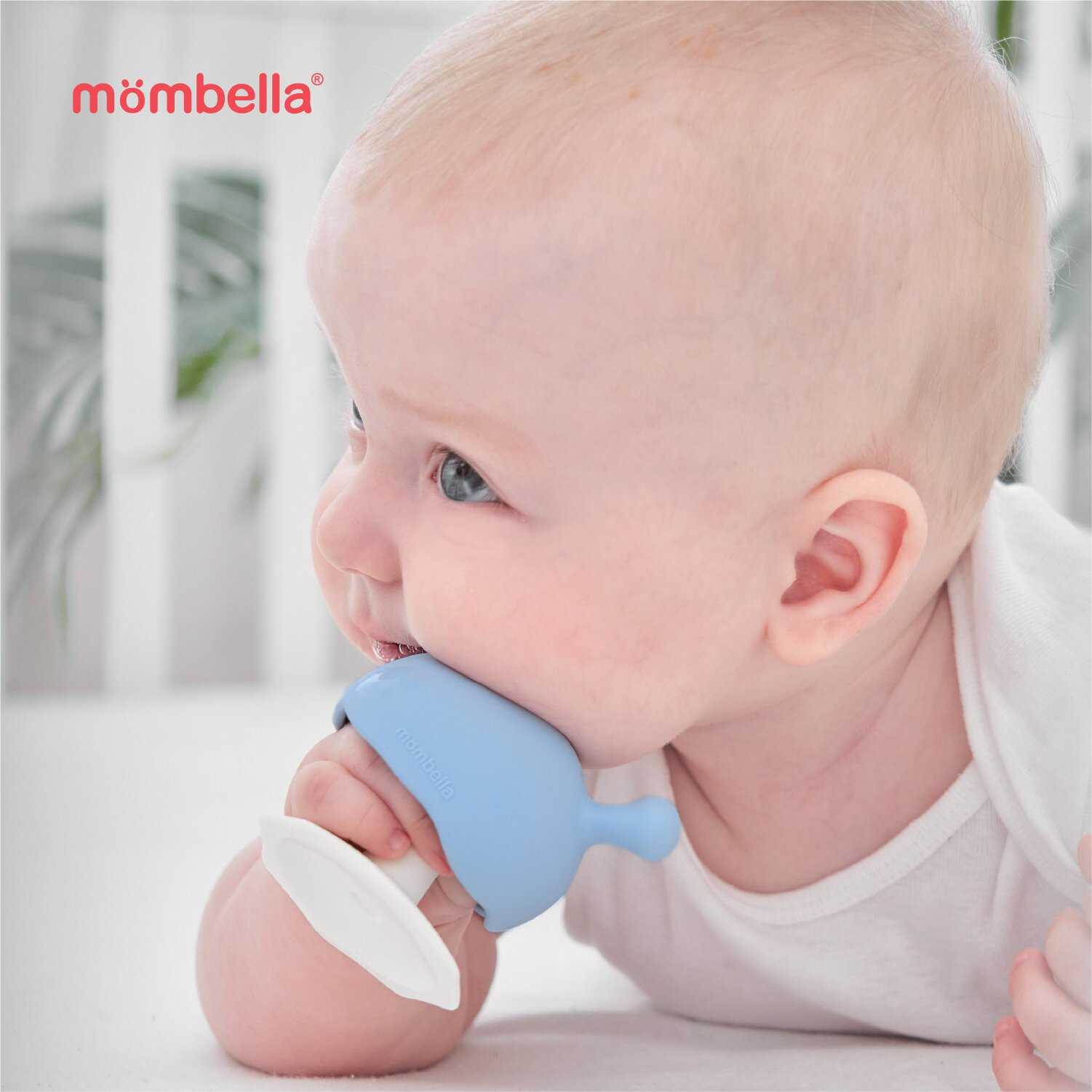 Прорезыватель грызунок для зубов Грибочек 3в1 Mombella, 3+ мес, силиконовый, голубой